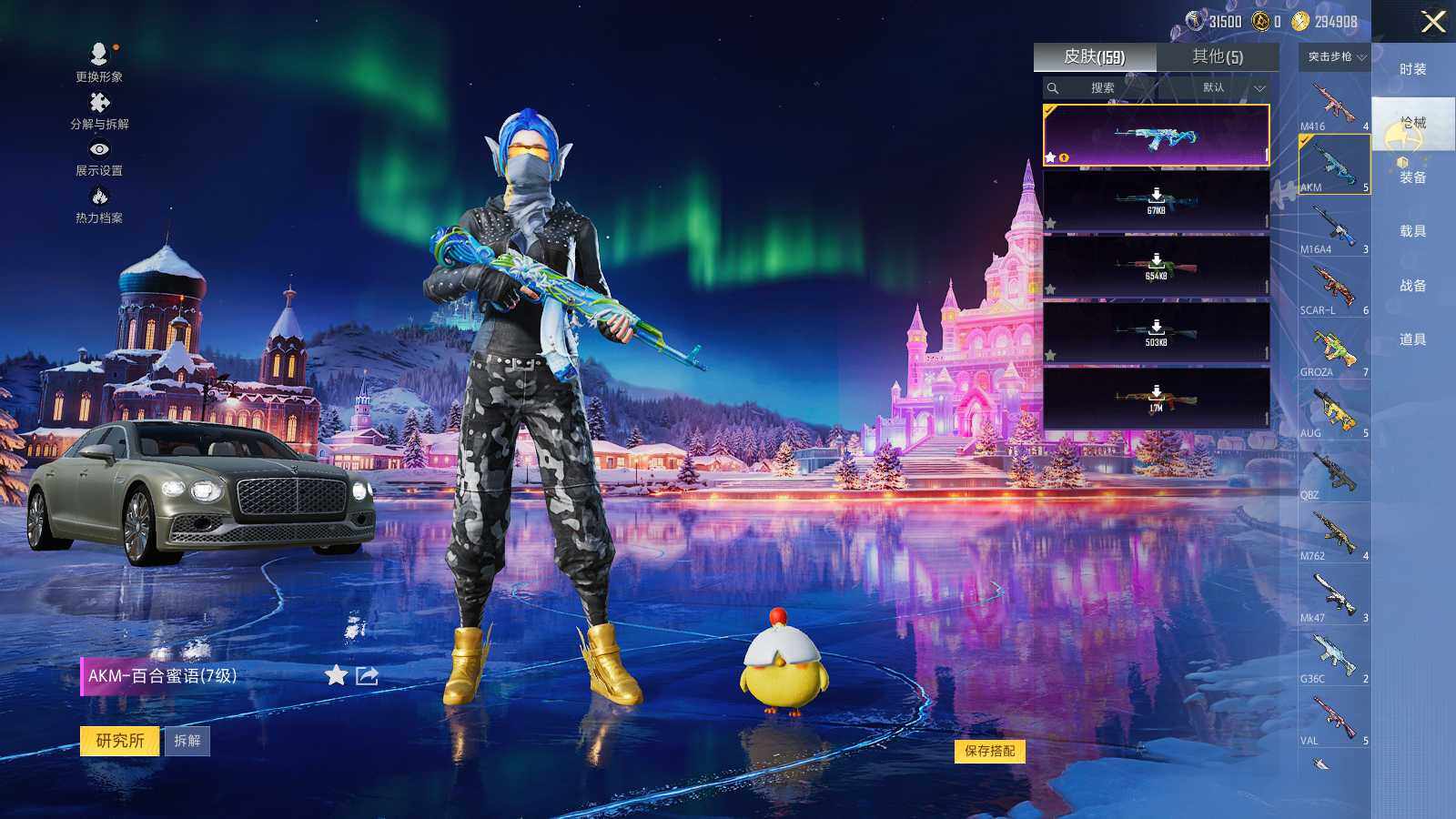 SCAR-L-童趣迷兔,SCAR-L-天蓬元帅,M416-心之恋语,P90-甜蜜草莓,Kar98K-巳巳如意,MG3-洛神天依