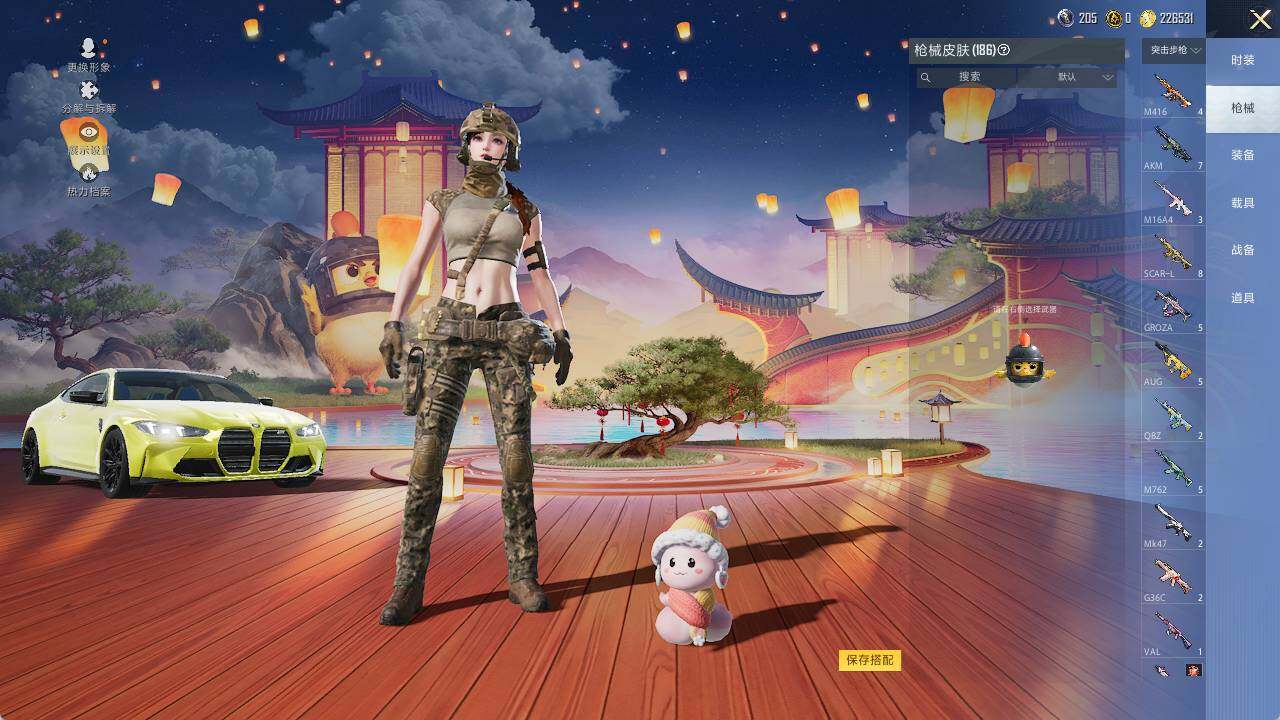 AKM-梦之光华,AKM-绿萝繁花,AKM-幽焰骑士,SCAR-L-金蛇镇世,M416-心之恋语,M416-至情至圣,GROZA-镜光银凌,M762-青锋波束,P90-沙丘之主,Kar98K-巳巳如意