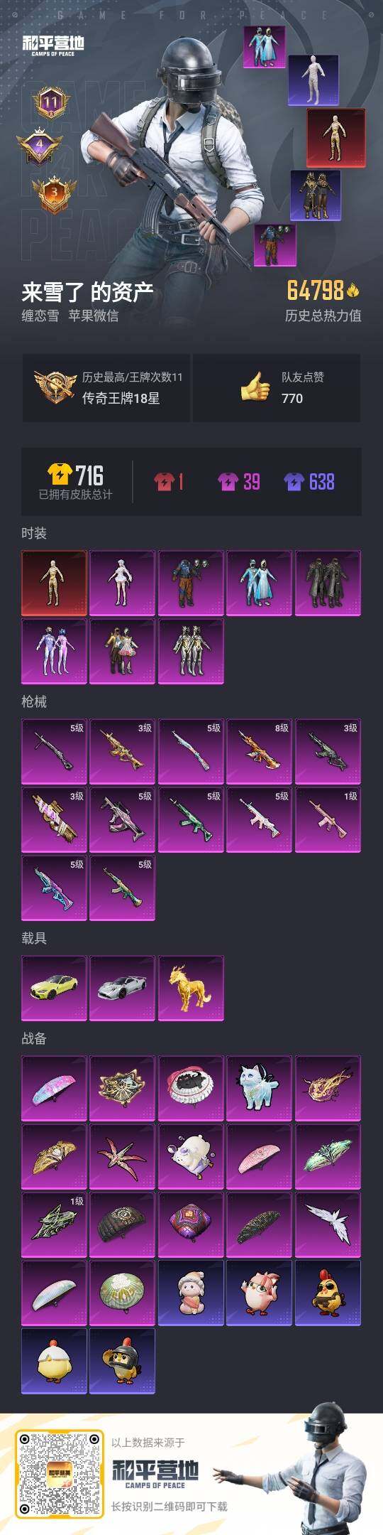 - [12024612]14粉装 7特效枪 14印记 可二次 可修改实名 优质装备:蝶舞迷情,UZI筑梦精灵,七级UZI-筑梦精灵,M416墨龙九天,千金淑猫,MK14-盛世惊鸿,樱桃泡泡,MK14-樱桃泡泡,七级MK14-樱桃泡泡,AMR-智耀战神,星穹咏叹调,奇迹舞步-贝贝,奇迹舞步-美雪,Kar98K-巳巳如意 热门装扮:恐龙拽拽,甜梦小狐,灵感创作师,彩虹甜喵,冰川红玫,冰川幽秘,第五大道,小蓝,兔兔白日梦,奶芙汪汪,恶魔喵喵 稀有枪皮:DP-28-豹影疾电 五级特效枪:五级Kar98K-巳巳如意,五级DP-28-豹影疾电,五级AMR-智耀战神 三级特效枪:三级M416-墨龙九天,三级MK14-盛世惊鸿 紫色装扮:田园牧歌,轻风白浪,和煦暖阳,SS22特训,白啸长虹,SS23特训,幻彩翩翩,妙红点点,龙舌兰冰茶,白兰地假日,娇憨猪猪,梦幻奶油,萌趣咩咩,SS21特训,极光玫瑰,SS31特训套装,人气偶像,冰川特警,冷焰舞者,霓虹热舞,旭日情侣,SS30特训套装,云朵鹅,雪绒豹,SS33特训套装,青涩时光,顶瓜瓜,SS20特训,SS16特训,猎梦纪元,飞驰魅影,音速流光,SS19特训,军刀雅典娜,豚鼠丹丹,吉莉礼服,甜心亚梦,虚音幻奏,电音精灵,SS17特训,SS18特训,水晶王族,智慧隐士,都市魅力,酒红色名流,酷潮明星,长空猛禽,霓虹街区,青年教官,缤纷果语,耀眼新星,荣耀,荧惑魅影,蓝彩潮人,蓝色运动,虎虎生威吉莉,街头潮人,蓝海鲸歌,飞行日记,魅力单车,鹤鸣,麻辣教官,黄色伏地魔,黄色名流,黄色运动,黑色伏地魔,龟仙人,冰河战士,龙魂突击队,蝶变,香桃花海,极速红龙,柠萌假日,橘黑制服,海岛探路者,涂山之恋,深蓝色名流,滨海假日,幻影武者,完美偶像,帅气教官,幻世战舞者,怒火燎原,战地督导,探宝勇士,湖蓝色名流,滨海厨神,绮丽涂鸦,疯狂小兔子,白熊同盟,白色伏地魔,破晓战魂,破蛋小黄鸡,福星高照,空岛之星,竞技达人朋克,红色运动,王牌教练,牛气冲天,灼焰舞者,炫蓝之夏,热血青春,牛气满满,猛禽,猎鹰,小熊娃娃,雏菊兔兔,萝兰蝴蝶,SS29特训,星途旅人,创世·幻影,白光莹,纯真浪花,热情海星,曼妙人鱼,SS28特训,卖崽青蛙,迎夏光舞,红潮炫舞,异域银装,鱼渊荷华,玉兔迎春,燕燕于飞,巳巳如意,青团波波,糖糖葫芦,棉花软糖,竞技名士,街头风暴,许七安,裁决天象,深海梦境,惊
