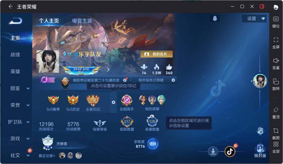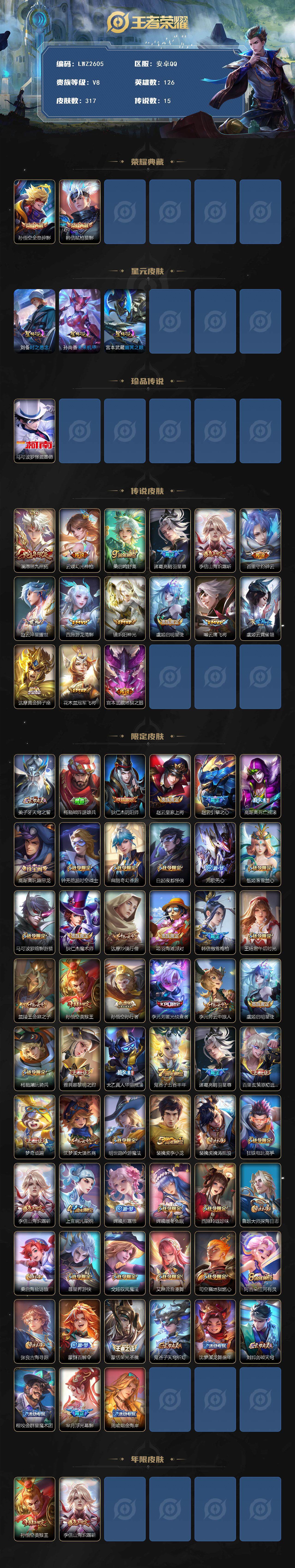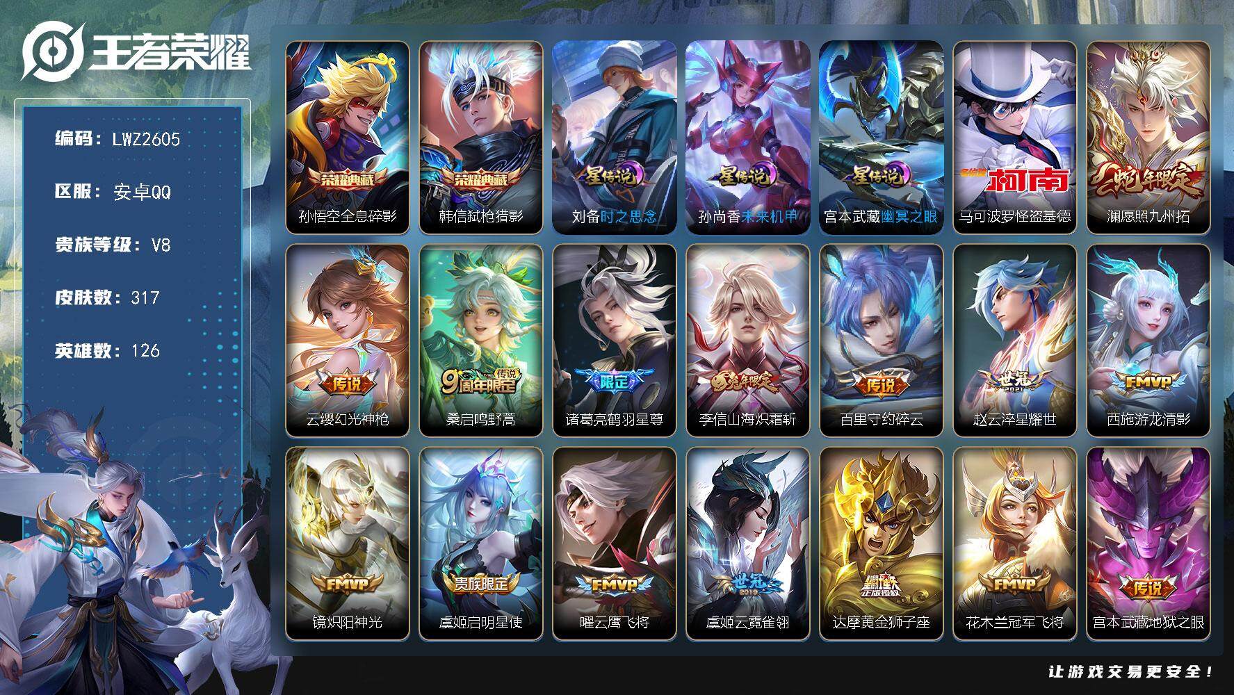 [14010990]【店主推荐捡漏号!可直接换绑】安卓Q-V8-最强王者段位-126英雄-317皮肤-2典藏-3星元-1珍品传说-15传说-91史诗