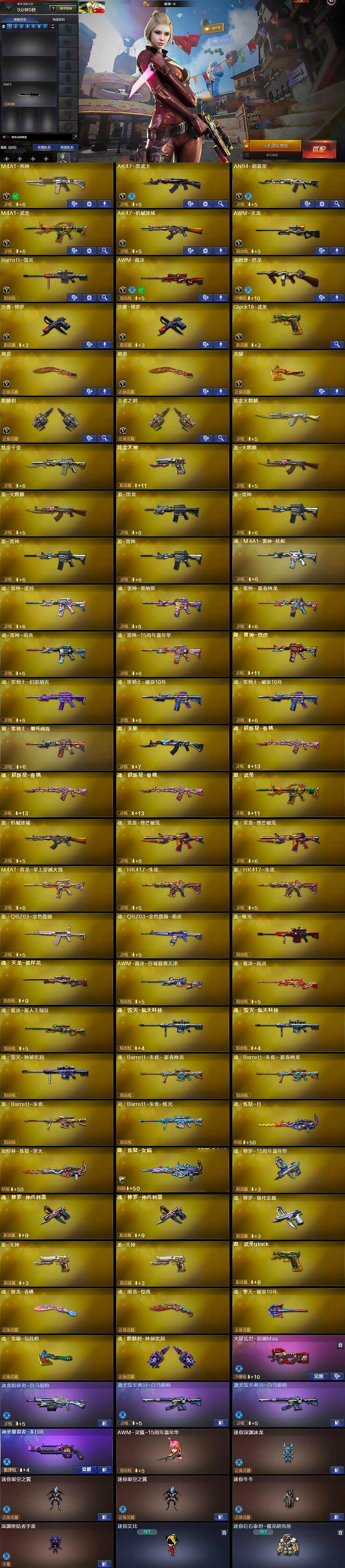 - [12237219]8粉装 9特效枪 9印记 可二次 可修改实名 女号 身法装备:暗影哥特(红眼罩) 优质装备:缤纷油彩(猪妹猪脸妹),M416暖熊萌萌,SCAR-L纯梦嫁纱,PKM江南烟雨,七级M416-暖熊萌萌,千金淑猫,AUG-暖羊咩咩,彩虹独角兽,樱桃泡泡,MK14-樱桃泡泡,幻彩电音,MG-36-幻彩电音,荧海星豚,蜜獾-荧海星豚,Kar98K-巳巳如意 热门装扮:暖熊萌萌,霓裳武神,动感兔斯基,潮萌小黄鸭,迅捷狂鲨,呆萌铁蟹,深海小丑鱼 稀有枪皮:DP-28-豹影疾电 五级特效枪:五级Kar98K-巳巳如意,五级蜜獾-荧海星豚,五级DP-28-豹影疾电,五级AUG-暖羊咩咩,五级SCAR-L-纯梦嫁纱,五级PKM-江南烟雨 四级特效枪:四级MG-36-幻彩电音 三级特效枪:三级MK14-樱桃泡泡 紫色装扮:田园牧歌,轻风白浪,和煦暖阳,SS22特训,SS23特训,幻彩翩翩,妙红点点,白兰地假日,娇憨猪猪,萌趣咩咩,SS21特训,SS31特训套装,冰川特警,霓虹热舞,极速光影,SS30特训套装,云朵鹅,彩虹兔,雪绒豹,乐游熊熊,SS33特训套装,顶瓜瓜,混沌火种,快乐星愿,SS13特训,SS14特训,SS19特训,粉团憨憨,软羊咩咩,吉莉礼服,长空猛禽,缤纷果语,耀眼新星,蓝色守护者,蓝海鲸歌,蜜露汐语,骑行爱好者,魅力单车,鹤鸣,黎明保卫者,龙的传人,柠萌假日,格斗先锋,海岛探路者,夏日音浪,王牌教练,潮流先锋,特殊使命,特训学院,SS28特训,异域银装,石蕴玉辉,鱼渊荷华,玉兔迎春,燕燕于飞,巳巳如意,熊抱抱,俏兔智灵,都市丽猫,青团波波,糖糖葫芦,竞技名士,绒宝小鹅,暗影哥特(红眼罩),小狗蛇点点,深海梦境,2P战斗服款,惊鸿侠骨,SS24特训(SS24特训套装),SS25特训,锦衣飞扬,智谋强哥,SS8特训,大橘大利,SS12特训,SS9特训,SS11特训,耀粉歌者,绒绒粉兔,粉恋花,蓝冰羽,紫幽梦,SS32特训服(SS32特训套装),瑰梦爱神,青玉碎影,绯格组合,萌黄之夏,Z.I.B特工,晨曦轻云,蜜桃派对,琉璃花蕾,恋语绒绒,雪夜云雾,果冻柠檬,弄潮海豚,光之冒险 优质战备:墨龙九天降落伞,莲影清波降落伞,闲梦青缨降落伞,萌物绒绒降落伞,绝色倾城降落伞,时光之吻降落伞,时光之誓飞行器,幻彩电音降落伞,冷漠罗丽降落伞,荧海星豚降落伞,月影灵韵降落伞,智耀战神降落伞