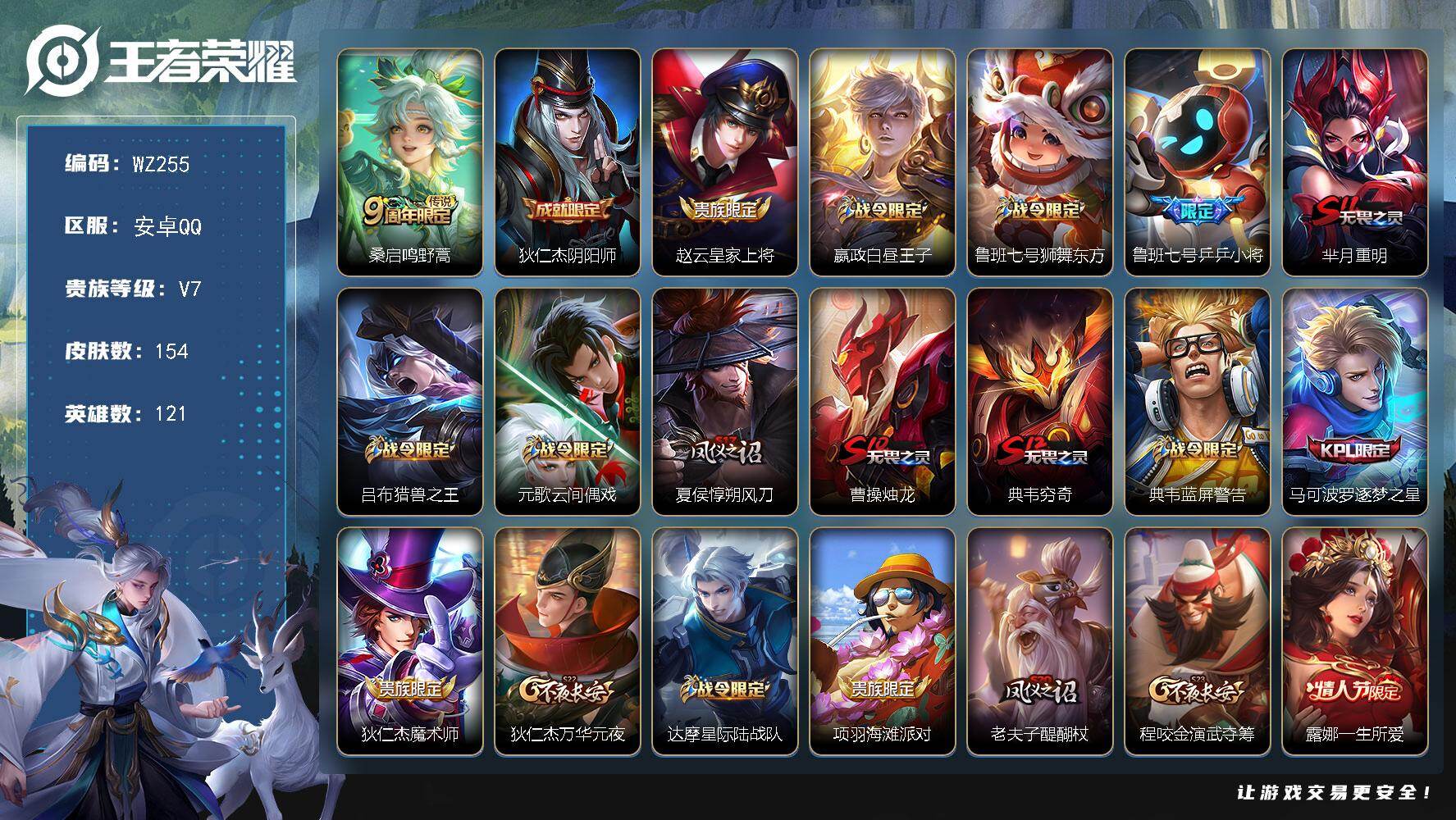 - [15202876]【店主推荐捡漏号!可直接换绑】安卓Q-V7-最强王者段位-127英雄-283皮肤-2典藏-3星元-17传说-83史诗 【英雄全皮】:李信全皮,猪八戒全皮 【荣耀典藏】:孙悟空全息碎影,韩信弑枪猎影 【传说皮肤】:后羿神树通天,司空震愿照山河定,女娲愿照千秋盛,妲己愿照众生和,澜愿照九州拓,蔡文姬愿照福禄聚,虞姬愿照岁时盈,云缨幻光神枪,桑启鸣野蒿,李信山海炽霜斩,李信一念神魔,刘备时之恋人,貂蝉猫影幻舞,干将莫邪久胜战神,后羿黄金射手座,孙尚香末日机甲,宫本武藏地狱之眼 【限定皮肤】:白起狰,蔡文姬夏日便利店,虞姬夏日便利店,姜子牙天穹之誓,狄仁杰阴阳师,虞姬凯尔特女王,赵云皇家上将,嬴政优雅恋人,嬴政白昼王子,孙尚香蔷薇恋人,鲁班七号狮舞东方,庄周蜃楼王,庄周高山流水,钟无艳王者之锤,孙膑妖精王,扁鹊炼金王,芈月重明,吕布猎兽之王,周瑜赤莲之焰,元歌无心,夏侯惇朔风刀,甄姬游园惊梦,曹操烛龙,典韦穷奇,马可波罗暗影游猎,狄仁杰魔术师,狄仁杰万华元夜,达摩星际陆战队,达摩沙漠行僧,项羽海滩派对,老夫子醍醐杖,关羽百相守梦,程咬金演武夺筹,兰陵王驯魔猎人,兰陵王金庭之子,亚瑟狮心王,孙悟空大圣娶亲,牛魔御旌,后羿圣弓游侠,李元芳云中旅人,钟馗神迹守卫,钟馗驱傩正仪,杨玉环遇见飞天,干将莫邪真爱魔法,雅典娜黎明之约,蔡文姬繁星吟游,太乙真人饕餮,鬼谷子原初探秘者,鬼谷子五谷丰年,苏烈千军破阵,百里玄策原初追逐者,百里守约朱雀志,弈星混沌棋,梦奇顽趣,沈梦溪大漠名商,明世隐疑决卦,裴擒虎李小龙,裴擒虎擒涛扼浪,狂铁御狮,米莱狄御霄,米莱狄胡桃异想国,李信山海炽霜斩,盾山御銮,猪八戒西部大镖客,猪八戒猪悟能,上官婉儿梁祝,鲁班大师探海日志,桑启海盐诗旅,阿古朵江河有灵,张良古海寻踪,蒙恬荣光圣徽,鬼谷子天穹祈灯,刘邦剑破天穹 【年限皮肤】:百里守约朱雀志,李信山海炽霜斩 【赛季限定】:庄周蜃楼王,孙膑妖精王,扁鹊炼金王,白起狰,芈月重明,夏侯惇朔风刀,曹操烛龙,典韦穷奇,狄仁杰万华元夜,达摩沙漠行僧,老夫子醍醐杖,程咬金演武夺筹,兰陵王金庭之子,张良古海寻踪,亚瑟狮心王,牛魔御旌,李元芳云中旅人,虞姬凯尔特女王,钟馗驱傩正仪,雅典娜黎明之约,太乙真人饕餮,鬼谷子原初探秘者,苏烈千军破阵,百里玄策原初追逐者,弈星混沌棋,梦奇顽趣,沈梦溪大漠名商,明世隐疑决卦,裴擒虎擒涛扼浪