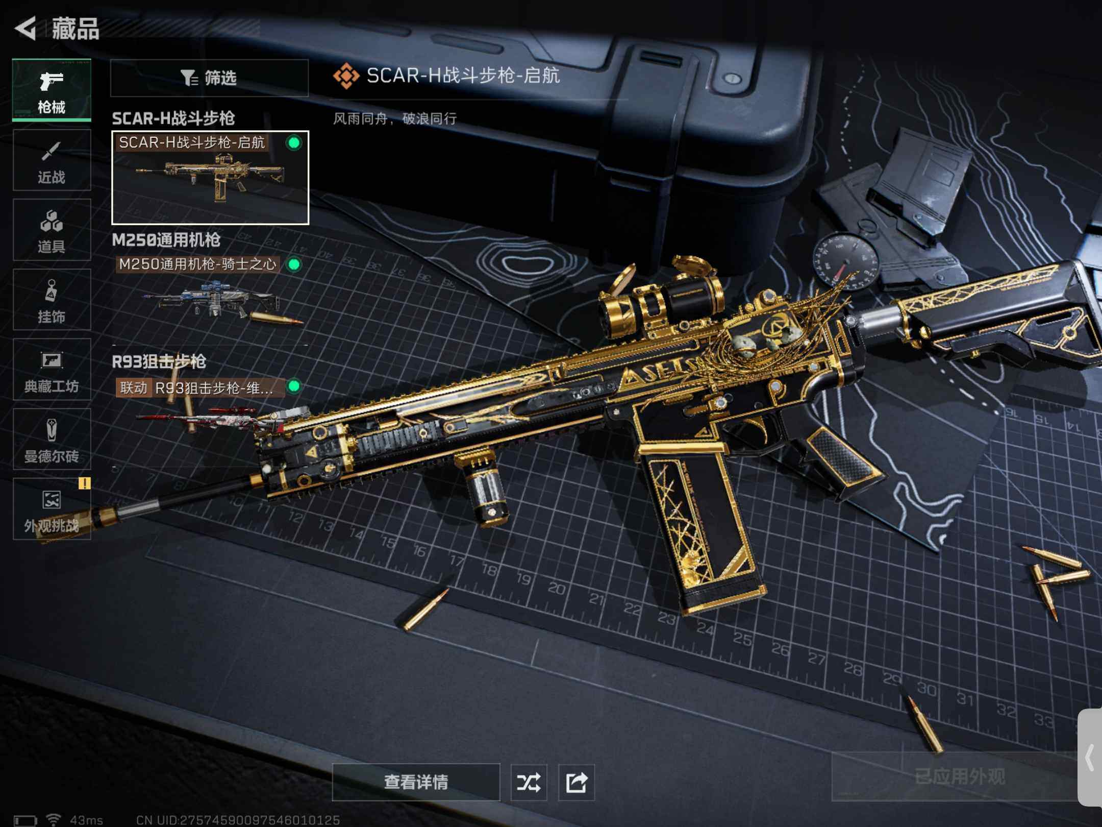 【传说级普通外观】:SCAR-H战斗步枪-启航,M250通用机枪-骑士之心,R93狙击步枪-维什戴尔