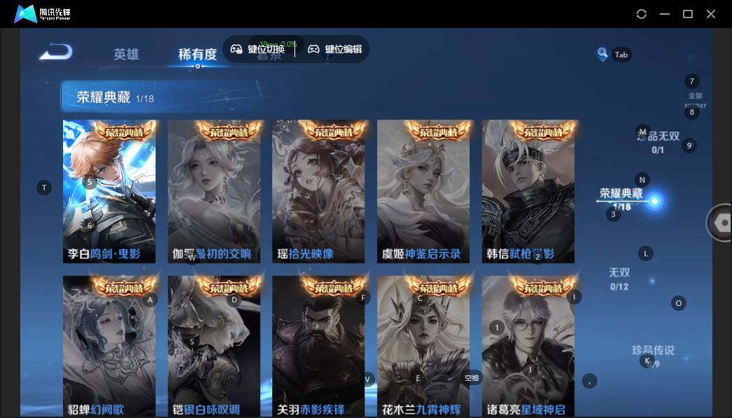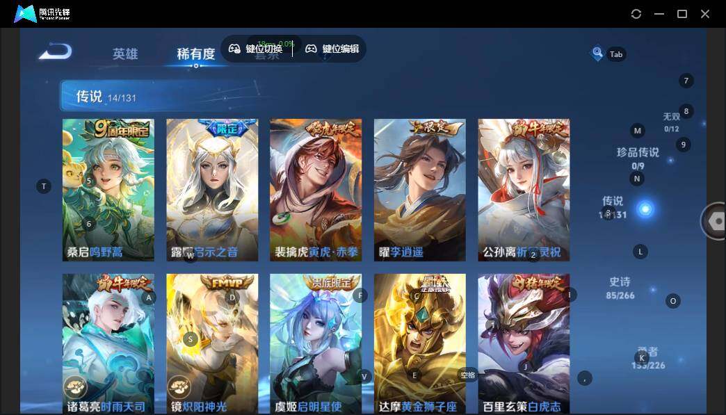 - PX_2080821-87 安卓微信/V8/至尊星耀/259皮肤/125英雄/1典藏/0珍品无双/0无双/2珍品传说/21传说/77史诗/9稀有英雄 【2 珍品传说】朽木白哉 暃,黑崎一护 宫本武藏, 【1 典藏皮肤】弑枪猎影 韩信, 【21 传说皮肤】枫霜尽 橘右京,启明星使 虞姬,逐花归海 澜,无双飞将 马超,凤求凰 李白,诗剑行 李白,仲夏夜之梦 貂蝉,落雪白狼 亚连,时雨天司 诸葛亮,遇见