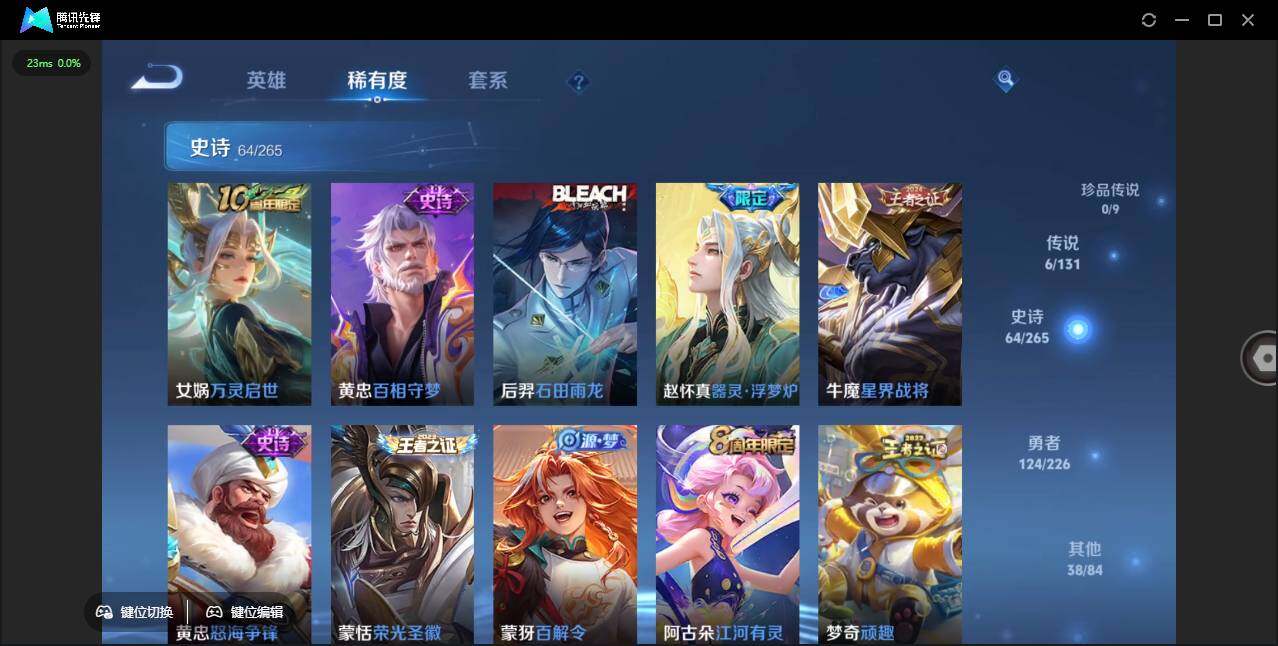 - [11607674]V5 3传说 120英雄 126皮肤 可修改实名 优质装备:地狱火 珍宝阁皮:妄想食味 限定皮:愿照·岁时盈(虞姬年限),逐霄战戟,鸣野蒿,梁祝,山海·玄木吟(马可年限) 史诗皮:器灵·浮梦炉,化蝶舞,星界战将,龙之律动,蒙犽顽岩魄,蔬乡物语(鲁班七号),紫霞仙子,千年之狐,江河有灵,百解令(蒙犽),高渐离燃音魔法,偶像歌手,猫狗日记-孙策,女仆咖啡,水果甜心,天才门将,星夜王子,心灵骇客,鬼剑武藏,暗渊魔法,心灵战警,舞动绿茵,纤云弄巧,乘风破浪,逐浪之夏,水晶猎龙者,曙光守护者,箭羽风息,金属风暴,鹰眼统帅,未来纪元-赵云
