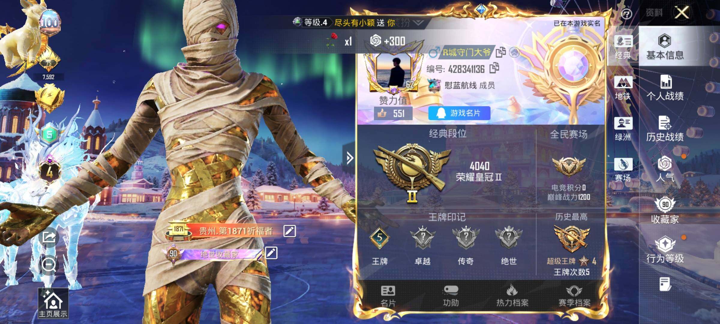 - [12291618]V10 4典藏 2无双 1珍品传说 71传说 126英雄 488皮肤 典藏英雄武则天 可修改实名 优质装备:天鹅之梦(小乔典藏),星空梦想(太空人),大秦宣太后,星域神启(倪克斯贼亮),神器·明辉仪,离恨烟(公孙离无双),黄金狮子座,黄金射手座,冠军飞将,云鹰飞将(小将军),绛天战甲(鸡嘴战神),黄金白羊座,猫影幻舞,久胜战神,炽阳神光,一念神魔,云霓雀翎,末日机甲-孙尚香(绿蚂蚱),地狱火,仲夏夜之梦(大飞蛾),音你心动-小乔,零号·赤焰,海洋之心,地狱之眼,飞鸢探春,音你心动-周瑜,胖达荣荣,李逍遥,乞巧织情,时之恋人-刘备(电焊工),游龙清影(小青龙),淬星耀世,超时空战士-狄仁杰,末日机甲-孙策,花朝如约(花篮子),挚爱之约,挚爱花嫁,无双飞将,音你闪耀(rap皮),碎云,天秀幻梦,神器·狴犴令,神器·明辉仪,山海·炽霜斩(李信年限),山海·琳琅生(小乔年限),山海·苍雷引(电光曜子),炽翼辉光(娃娃菜牛角包),燃星之曲,追逃游戏(安琪拉),澜逐花归海,艾琳觅芳踪,云中君群星魔术团,朵莉亚心动手记,牧神诗旅,涂山容容 珍品传说:兔狲·蓬尾 传说皮:铠冥王哈迪斯,幻光神枪 珍宝阁皮:蔷薇恋人,女武神 限定皮:逐霄战戟,映山客,陌上桑,鸣野蒿,凤求凰(白切鸡),凤凰于飞,太华(伽罗年限),武陵仙君(小桃花),异界灵契(白毛香),傲雪梅枪,补天,寅虎·展翼(孙膑年限),前尘镜,星穹之声,绯月行,时之彼端,白鹤梁神女,魔法小厨娘,神威(电光马子),飞衡(韩信年限),玄嵩(庄周年限),山海·碧波行(瑶年限),无限倾心-项羽,瑞麟志(木兰年限),至美·乘鲤谣,遇见飞天,高山流水,诗剑行,无限倾心-虞姬,齐天大圣,匿光决锋者,怒海麟威,降魔,五谷丰年,青龙志(铠年限),冰锋战神,幽恒(沐浴露),武圣,龙胆,烈魂,岱宗(典韦年限),虎魄,天狼绘梦者,李小龙,玄武志(苏烈年限),朱雀志(守约年限),如梦令-嫦娥,霸王别姬-虞姬,奇迹圣诞,纯白花嫁,孙行者,猪悟能,一生所爱,热情桑巴,匿光追影者,女儿国国王,寅虎·御盾(廉颇年限),寅虎·心曲(虎婆),寅虎·赤拳(老虎年限),时之祈愿-云中君,时之祈愿-瑶(瑶传限),百木心枪,玉兔公主,启示之音,无尽星芒,深海之息(深海大菠萝),唐三藏,枫霜尽,匿光启智者,时之奇旅-妲己,神器·万象笔,梦圆繁星,山海·玄木吟(马可年限),冰