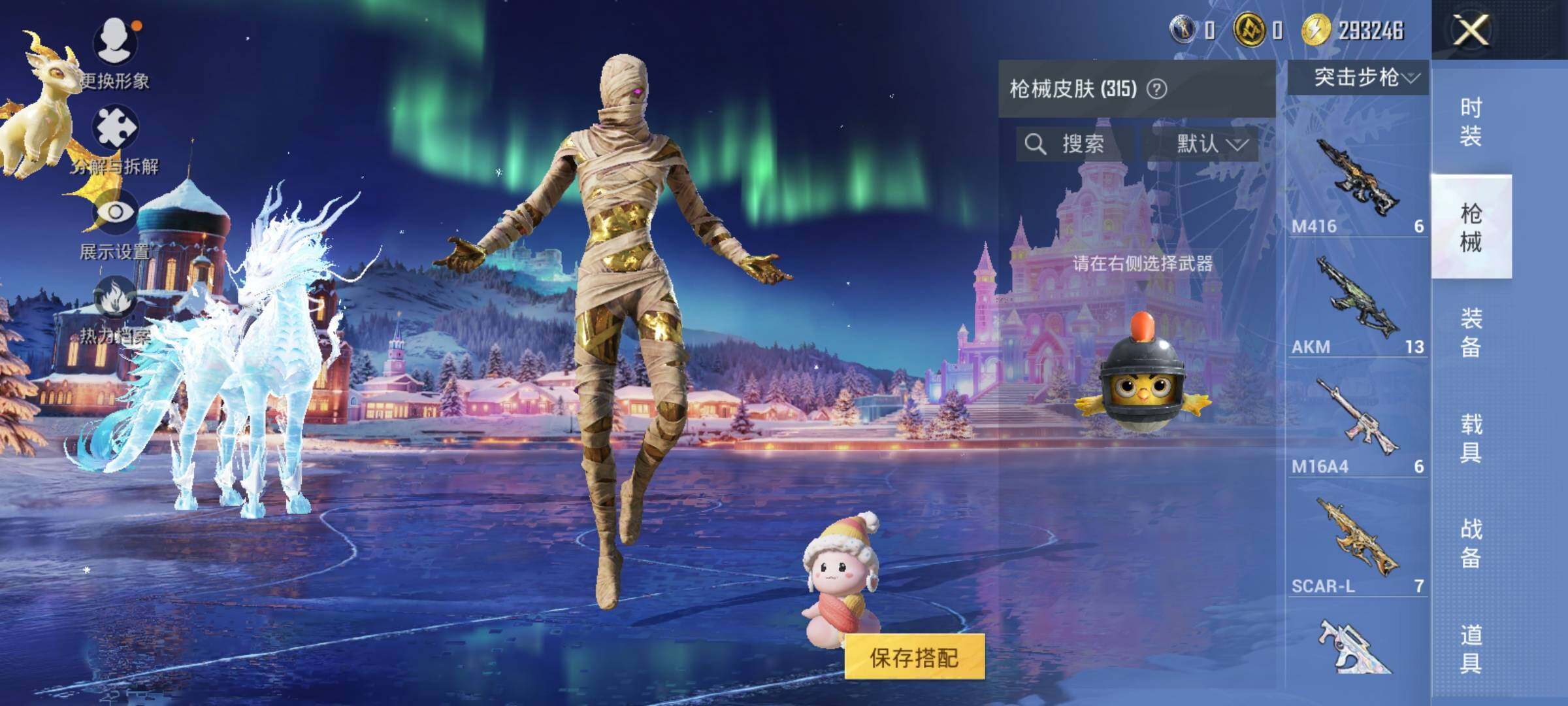 AKM-梦之光华,AKM-幽焰骑士,SCAR-L-纯梦嫁纱,SCAR-L-金蛇镇世,M416-风花雪月,M416-墨龙九天,Kar98K-巳巳如意,Kar98K-圣域龙灵,M24-莲影清波,MK12-雪月幻音,DP-28-千金淑猫,MG3-洛神天依