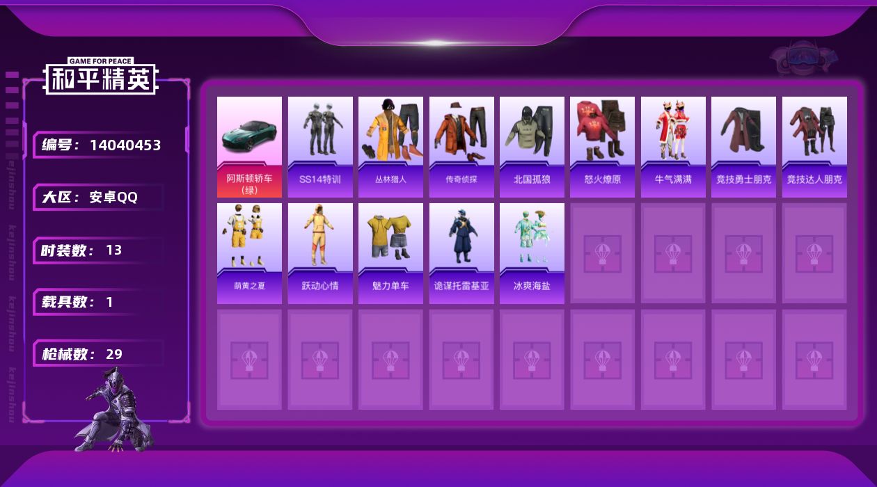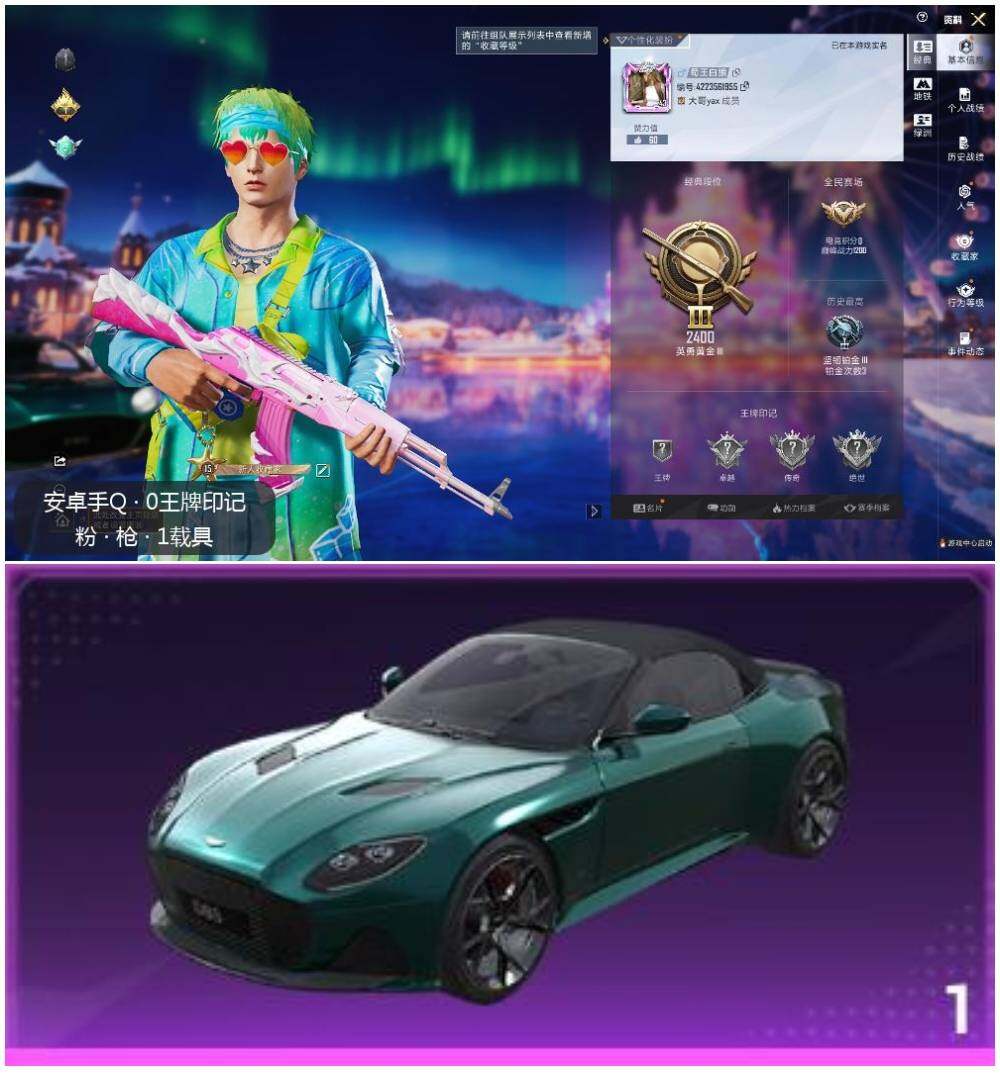 [14040453]可二次【店主推荐捡漏号!可直接换绑】 安卓 手Q-1载具-9565热力值-13套装-29枪皮【粉色载具】:阿斯顿马丁DBS(绿)