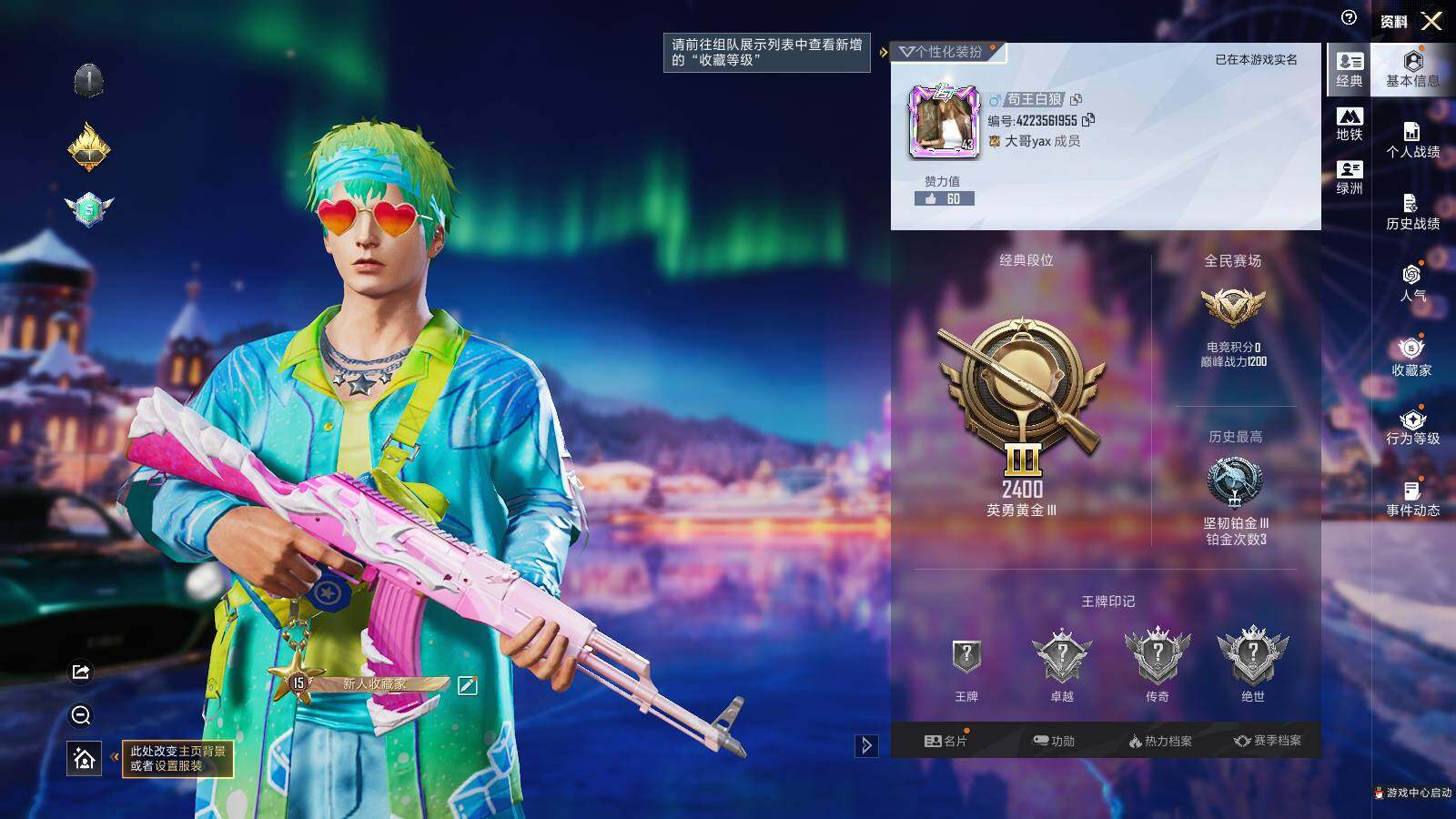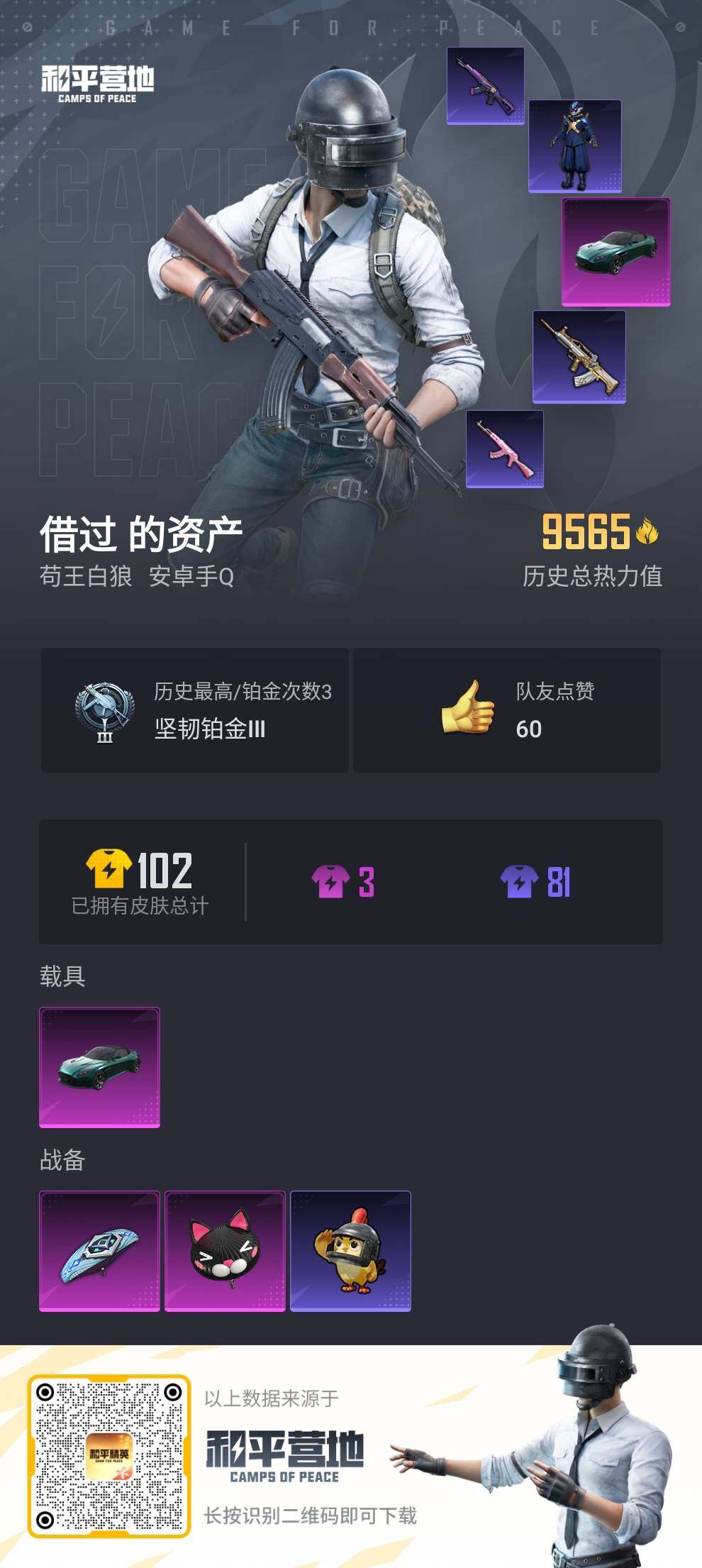 - [15146889]【店主推荐捡漏号!可直接换绑】 苹果 手Q-2粉装-3特效枪-1载具-4.8w热力值-7王牌印记-118套装-154枪皮【热门品类】:套装-金羽特工,套装-粉红小猪【粉色载具】:特斯拉Roadster(水滴蓝)【粉色套装】:角色-守护天翼,角色-萨利娅【粉色枪皮等级】:M416-五爪金龙(七级),Kar98K-巳巳如意(五级),破片手榴弹-热量炸弹(六级)