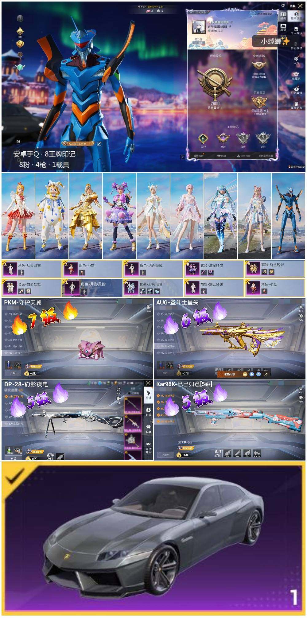 - [13764253]可二次【店主推荐捡漏号!可直接换绑】/素材身法号 安卓 手Q-21粉装-7特效枪-6载具-6粉色飞行器-10.1w热力值-8王牌印记-215套装-266枪皮【热门品类】:粉装-怪诞乔克,粉装-雪国幻梦,粉装-梦幻火箭,粉装-童趣迷兔,粉装-缤纷油彩,套装-浪漫天命,套装-赤蝎幽灵,套装-都市猎人,套装-深海小丑鱼,套装-小丑鱼,套装-奇异狩猎者,角色-军刀雅典娜,套装-胖达团团,套装-胖达圆圆,套装-金羽特工,套装-沙漠守护者,套装-AG战队服,套装-潮萌小黄鸭,套装-暗影哥特,套装-粉红小猪,套装-萌熊伴侣,角色-8号机,角色-Mark.06,小丑红鼻头,M416-星际漫游【粉色载具】:兰博基尼Aventador SVJ(翡翠绿),路特斯ELETRE(冰川蓝),玛莎拉蒂Ghibli(蓝),焰龙咆哮,俏皮小熊猫,僚机-萌兔起飞【粉色套装】:粉装-数码大师,粉装-粉色回忆,粉装-怪诞乔克,粉装-宝贝奶油派,粉装-雪国幻梦,粉装-梦幻火箭,粉装-缤纷油彩,粉装-新星烈龙,粉装-童趣迷兔,粉装-炙焰红王,粉装-星之彼岸,粉装-馨动时刻,粉装-葫芦兄弟,粉装-彩虹鹿灵,粉装-山涧鹿灵,粉装-吟月归客,粉装-海渊国主,角色-零号机款机体服,粉装-流星咚咚,粉装-酣梦娃娃,角色-初号机 觉醒Ver.【粉色枪皮等级】:AKM-梦之光华(五级),SCAR-L-梦幻火箭(五级),SCAR-L-青春物语(一级),M416-心之恋语(六级),GROZA-焦糖拿铁(五级),M762-甜心娃娃(五级),M249-蓝莓炮弹(四级)【粉色飞行器】:梦幻火箭飞行器,古堡领主飞行器,潮汐统领飞行器,林间仙鹿飞行器,齐天大圣飞行器,天之羽翼飞行器
