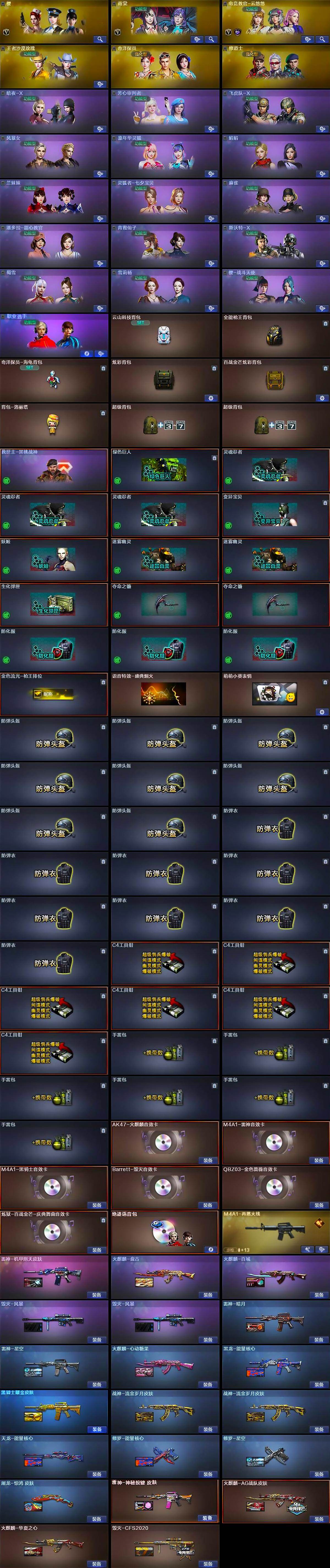 【皮肤】:雷神-暗月,雷神-星空,雷神-机甲刑天皮肤,M4A1-再燃火线,雷神-神秘按键 皮肤,火麒麟-AG战队皮肤,火麒麟-华夏之心,火麒麟-盘古,火麒麟-百城,火麒麟-心动糖果,毁灭-CFS2020,毁灭-风暴*2,黑龙-能量核心,黑骑士耀金皮肤,战神-流金岁月皮肤*2,AK47-B-常胜将军-曹操*2,AK47-B-常胜将军-孙权,天龙-能量核心,修罗-能量核心,修罗-星空,屠龙-惊鸿 皮肤,轻型军用手斧-再燃火线