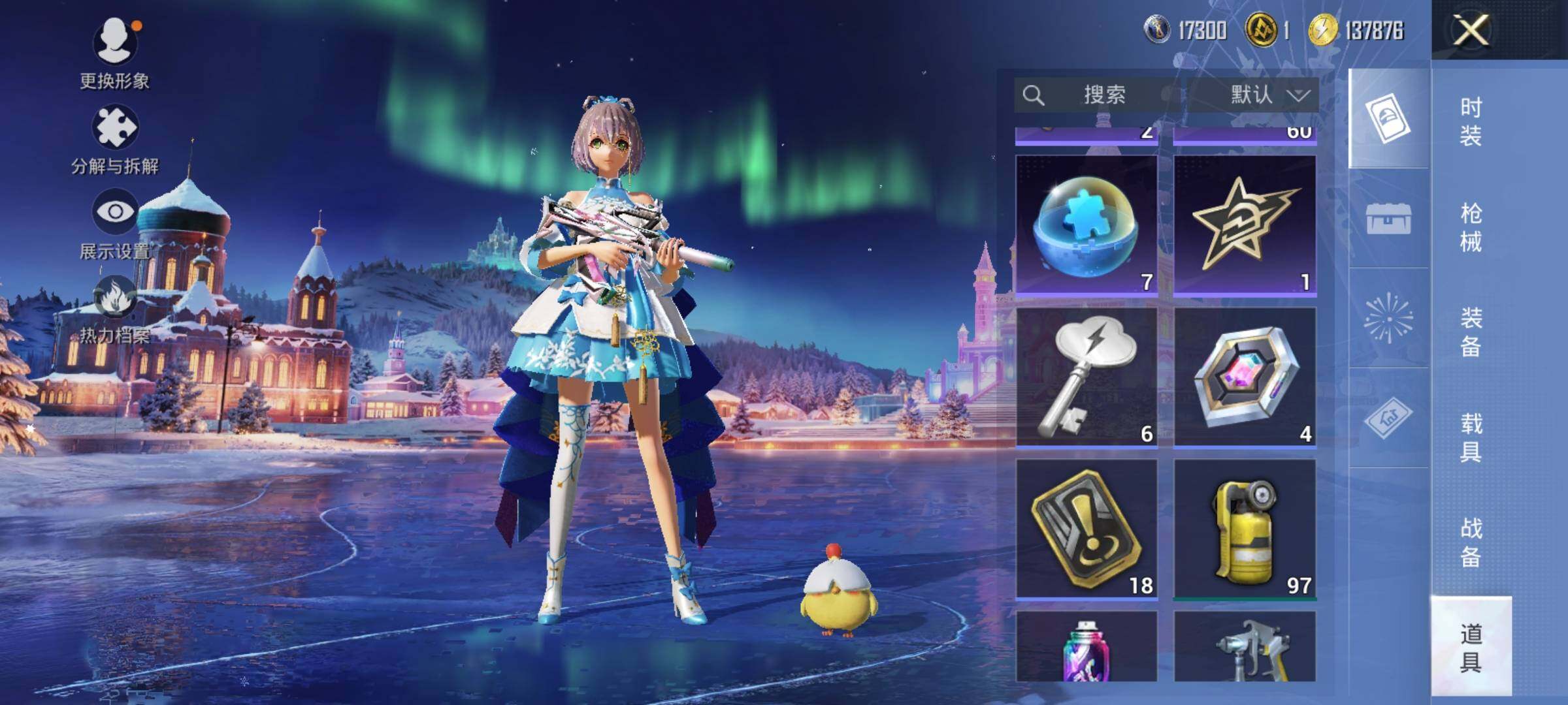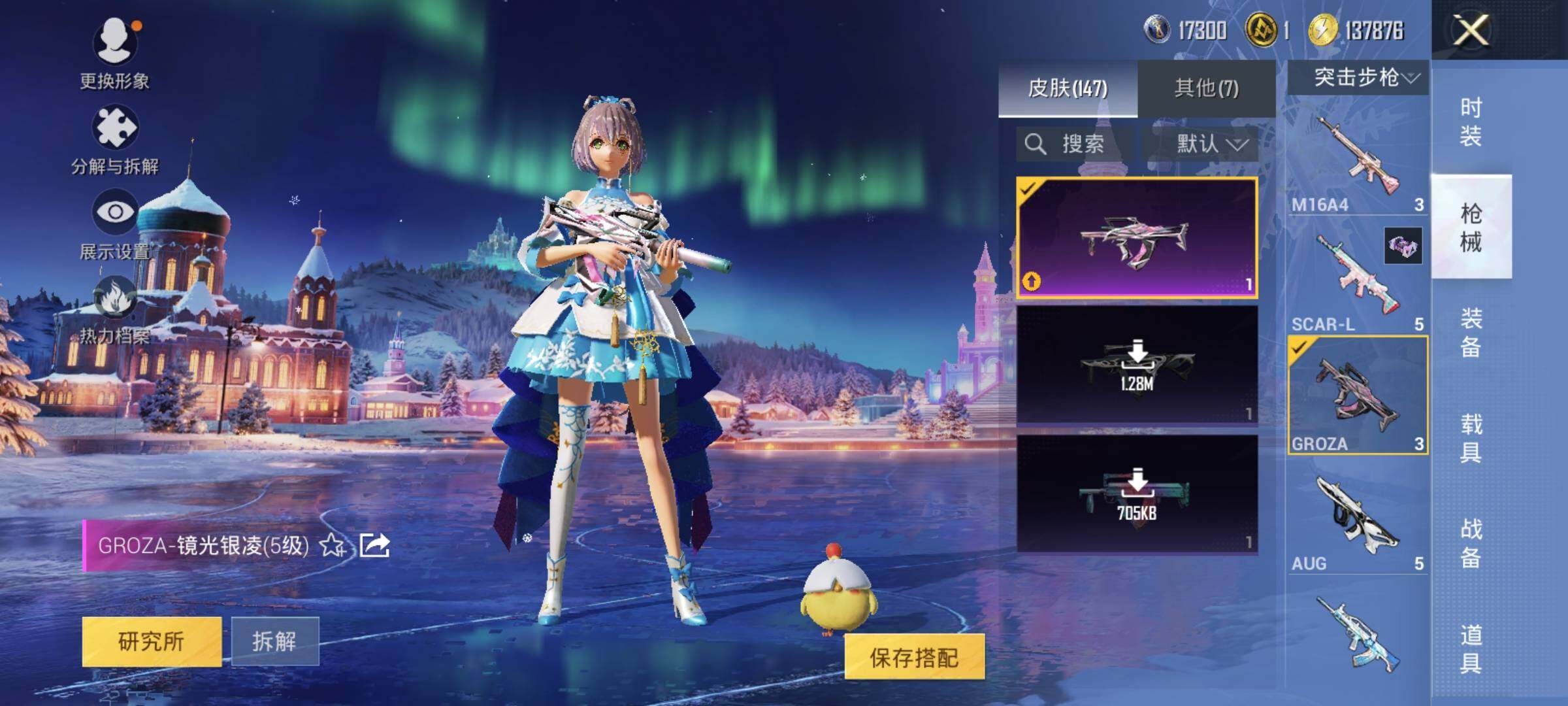 AKM-绿萝繁花,M416-超新星,M416-电玩时刻,GROZA-镜光银凌,Vector-飒粉甜心,Kar98K-巳巳如意