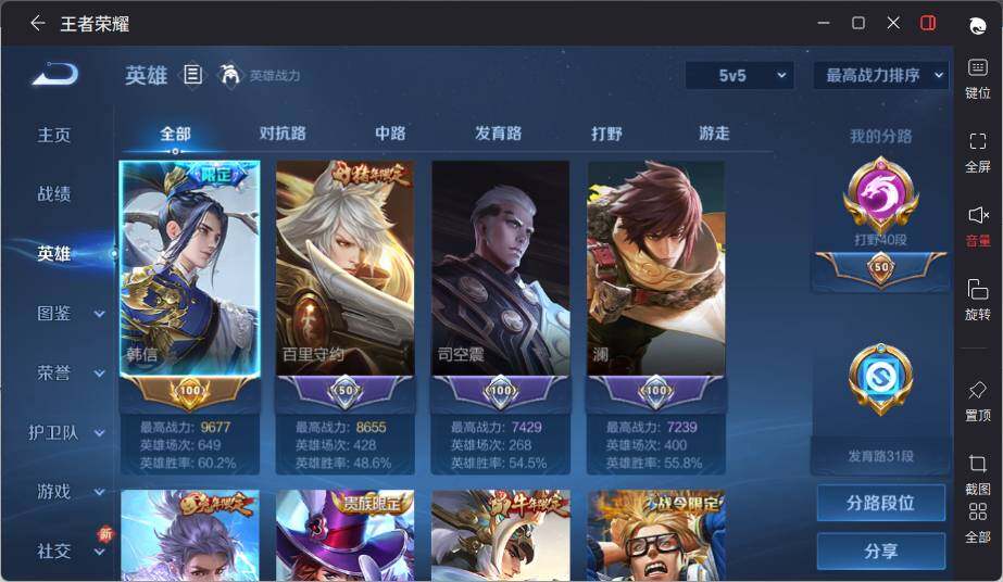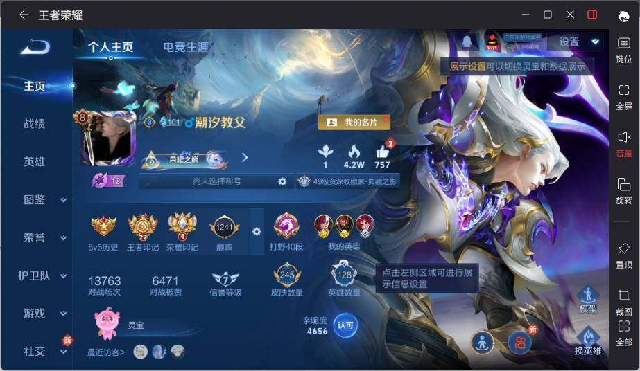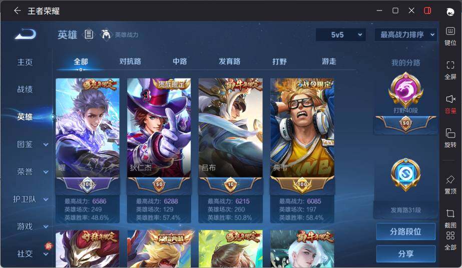 [14070255]【店主推荐捡漏号!可直接换绑】安卓Q-V8-最强王者段位40段打野2金标-128英雄-245皮肤-3典藏-3星元-15传说-71史诗