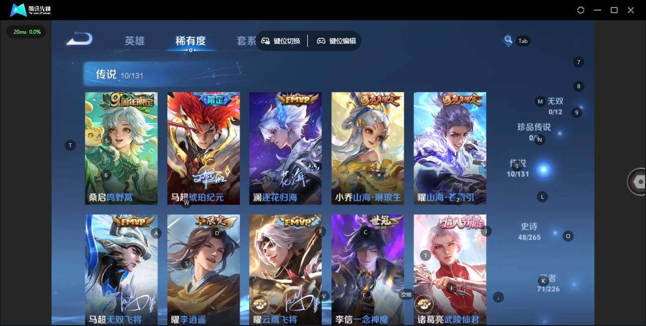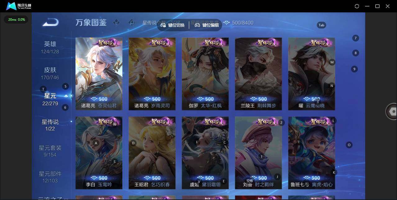 - PX_2094456-28 苹果QQ/永恒钻石/263皮肤/124英雄/2典藏/0珍品无双/1无双/1珍品传说/17传说/79史诗/9稀有英雄 【1 珍品传说】时之奇旅 孙策, 【2 典藏皮肤】全息碎影 孙悟空,九霄神辉 花木兰, 【1 无双皮肤】离恨烟 公孙离, 【17 传说皮肤】启明星使 虞姬,逐花归海 澜,无双飞将 马超,李逍遥 曜,零号·赤焰 孙悟空,云鹰飞将 曜,深海之息 马可波罗,浮
