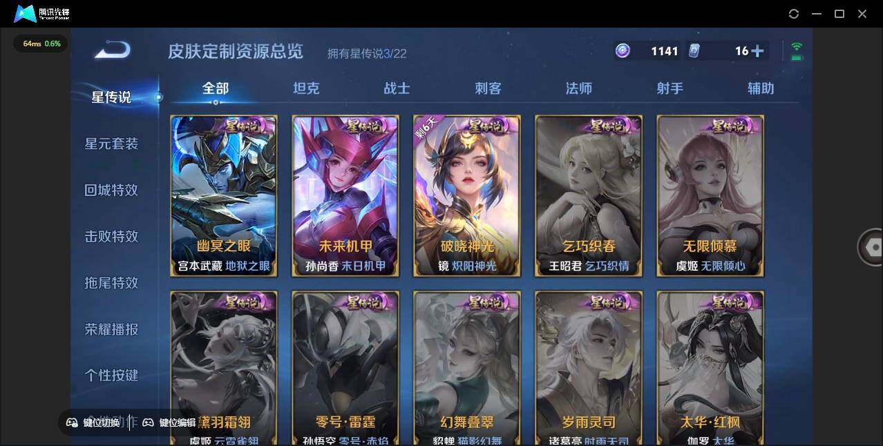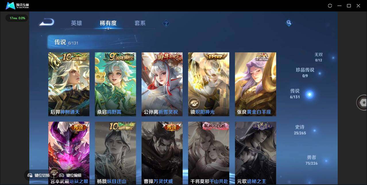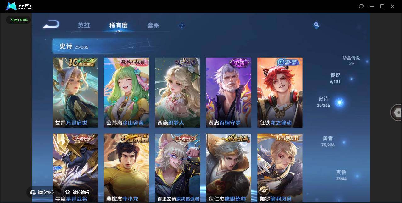 - [11472219]V9 2典藏 13传说 125英雄 313皮肤 可修改实名 连体和平 荣耀水晶:弑枪猎影(韩信典藏),活力突击 传说皮:黄金天蝎座,乘龙·淬吴钩(孙策年限),典韦战鼓燎原,山海·炽霜斩(李信年限),地狱之眼,一念神魔,炽阳神光,音你心动-周瑜,碎云,百相守梦(张飞) 珍宝阁皮:蔷薇恋人,玩趣恶龙 限定皮:至尊宝,魔法小厨娘,神威(电光马子),高山流水,降魔,五谷丰年,游园惊梦,李小龙,孙行者,猪悟能,天魔缭乱,青春决赛季,匿光追影者,女儿国国王,寅虎·瑞焰(虎皮蛋子),百木心枪,玉兔公主,匿光启智者 史诗皮:石田雨龙,怒海争锋,决胜骁骑,奇遇星旅,蔬乡物语(鲁班七号),琥珀纪元伽罗,紫霞仙子,苍穹之光,黄金分割率,特工魅影,千年之狐,永昼,江河有灵,高渐离燃音魔法,百解令(蒙犽),蒙恬荣光圣徽,冰冠公主,偶像歌手,无限星赏官,电玩·爆裂旋风,龙骑士(小龙虾),末日机甲-吕布,猫狗日记-孙策,时之恋人-孙尚香,乱世虎臣,节奏热浪,女仆咖啡,摇滚巨星,水果甜心,绅士熊喵,天才门将,星夜王子,心灵骇客,功夫厨神,德古拉伯爵,暗隐猎兽者,幽灵船长,鬼剑武藏,暗渊魔法,心灵战警,乐园奇幻夜,天秀·启明,舞动绿茵,地狱岩魂,纤云弄巧,拒霜思,缤纷独角兽,乘风破浪,逐浪之夏,水晶猎龙者,曙光守护者,热力回旋,箭羽风息,金属风暴,圣诞狂欢,圣诞恋歌,鹰眼统帅,暗夜贵公子,魅力维加斯,黎明之约,赏金猎手,千筹问战,无心,未来纪元-赵云