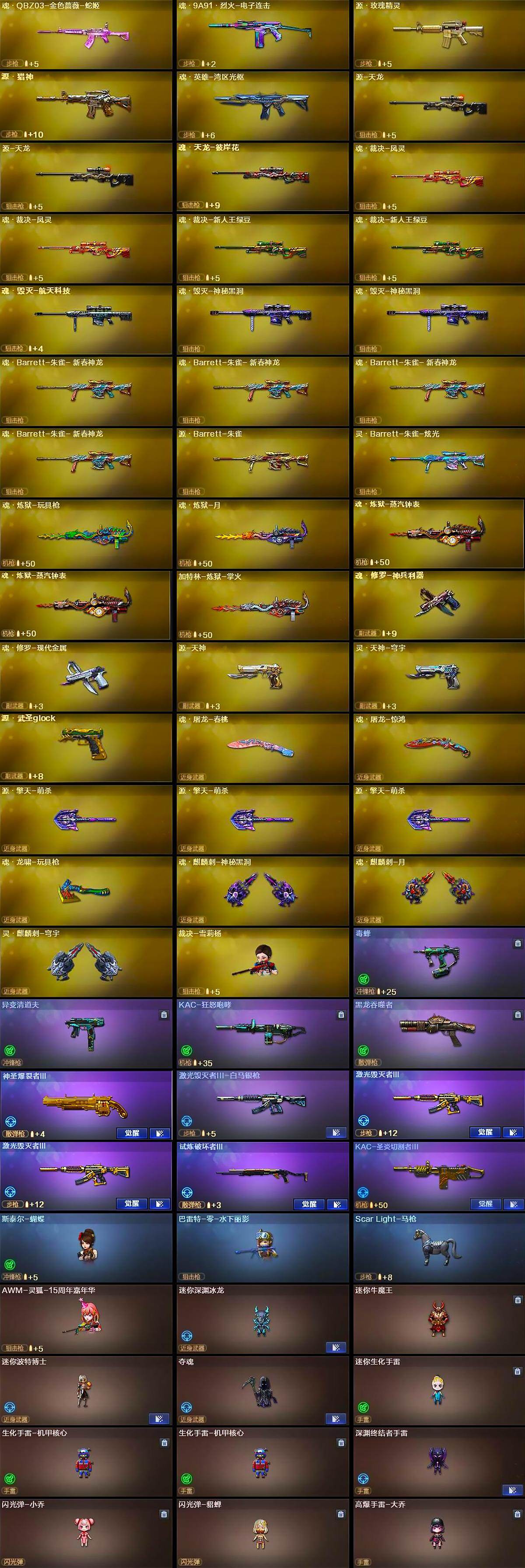 【音效卡】:M4A1-雷神音效卡,M4A1-雷神-云海游龙音效卡,M4A1-黑骑士音效卡,Barrett-毁灭音效卡,AWM-裁决音效卡,Scar Light-白虎音效卡,QBZ03-天罚音效卡