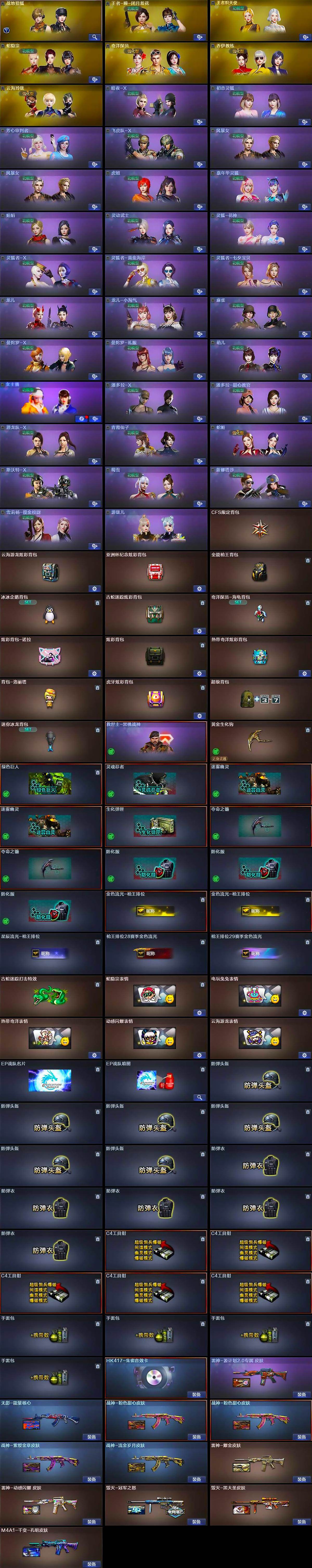 【英雄级武器】:AK47-火麒麟,M4A1-雷神*2,HK417-朱雀,Scar Light-白虎,QBZ03-天罚,无影-神兵利器,黑武士-锦绣游龙,超新星-热带奇洋,金色蔷薇-古蛇迷踪,QBZ03-金色蔷薇,烈火-动感闪耀,王者之武-觉醒版,王者之势-觉醒版,AK-47-猩红传说*3,AK47-B-战神,黑骑士-海王,白虎-电玩蓝兔,Barrett-毁灭,M200-幻神,烈龙-云海游龙,沙鹰-修罗*2,COP 357-雷霆王者-觉醒版,天神-动感闪耀,修罗-古蛇迷踪,麒麟刺,幻灵之锋,屠龙-动感闪耀,擎天-云海游龙,龙啸-热带奇洋,手雷-动感闪耀,手雷-云海游龙,手雷-热带奇洋,高爆手雷-古蛇迷踪,闪光弹-云龙,烟雾弹-神工天巧*2,烟雾弹-古蛇迷踪