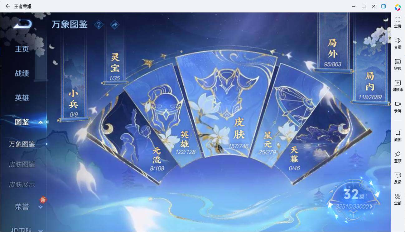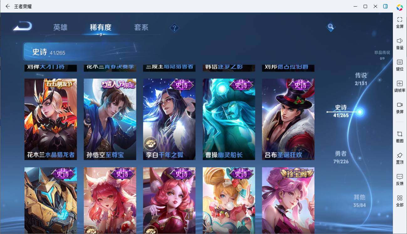 - [11818771]V6 1珍品传说 5传说 85英雄 81皮肤 可修改实名 女号 优质装备:黑崎一护,黄金狮子座,地狱之眼,涂山容容 传说皮:幻光神枪 限定皮:愿照·九州拓(澜年限),逐霄战戟,鸣野蒿 史诗皮:鸭鸭历险记-刘禅,化蝶舞,龙之律动,百相守梦-周瑜,茶境仙,百相守梦-百里守约,百相守梦-黄忠,紫霞仙子,千年之狐,无限星赏官,节奏热浪,水果甜心,鬼剑武藏,暗渊魔法,心灵战警,舞动绿茵,水晶猎龙者,曙光守护者,圣诞恋歌,鹰眼统帅,魅力维加斯