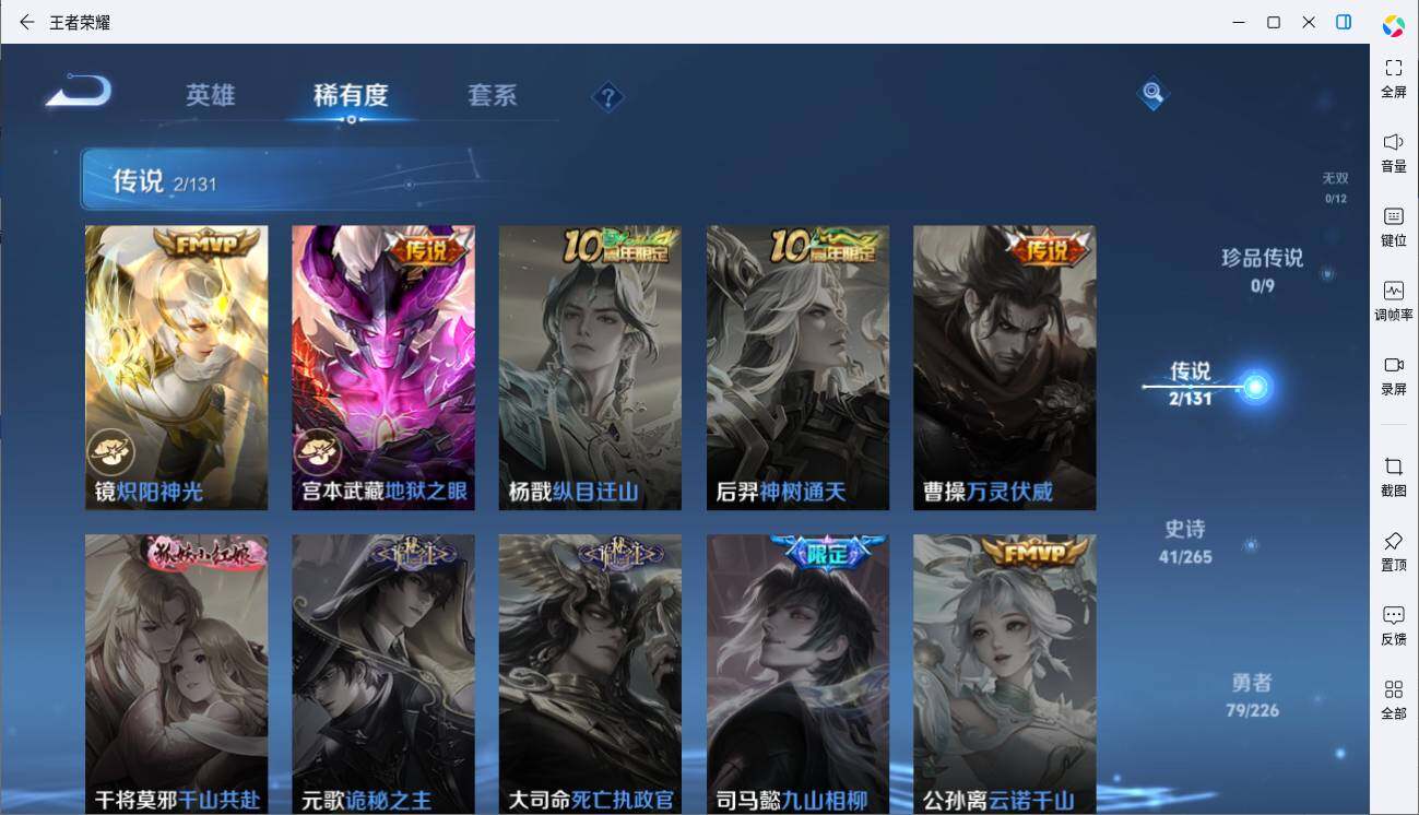 - [11446287]V6 2传说 119英雄 134皮肤 可修改实名 女号 优质装备:云鹰飞将(小将军) 珍宝阁皮:妄想食味,女武神 限定皮:鸣野蒿,山海·碧波行(瑶年限),五谷丰年,梁祝,李小龙 史诗皮:遇见神鹿,黄金分割率,电玩·爆裂旋风,江河有灵,晚萤,冰冠公主,末日机甲-吕布,猫狗日记-孙策,乱世虎臣,节奏热浪,女仆咖啡,水果甜心,天才门将,时之奇旅-安琪拉,鬼剑武藏,繁星吟游(呼啦呼啦),拒霜思,缤纷独角兽,逐浪之夏,热力回旋,箭羽风息,金属风暴,圣诞狂欢,圣诞恋歌,鹰眼统帅,魅力维加斯,无心