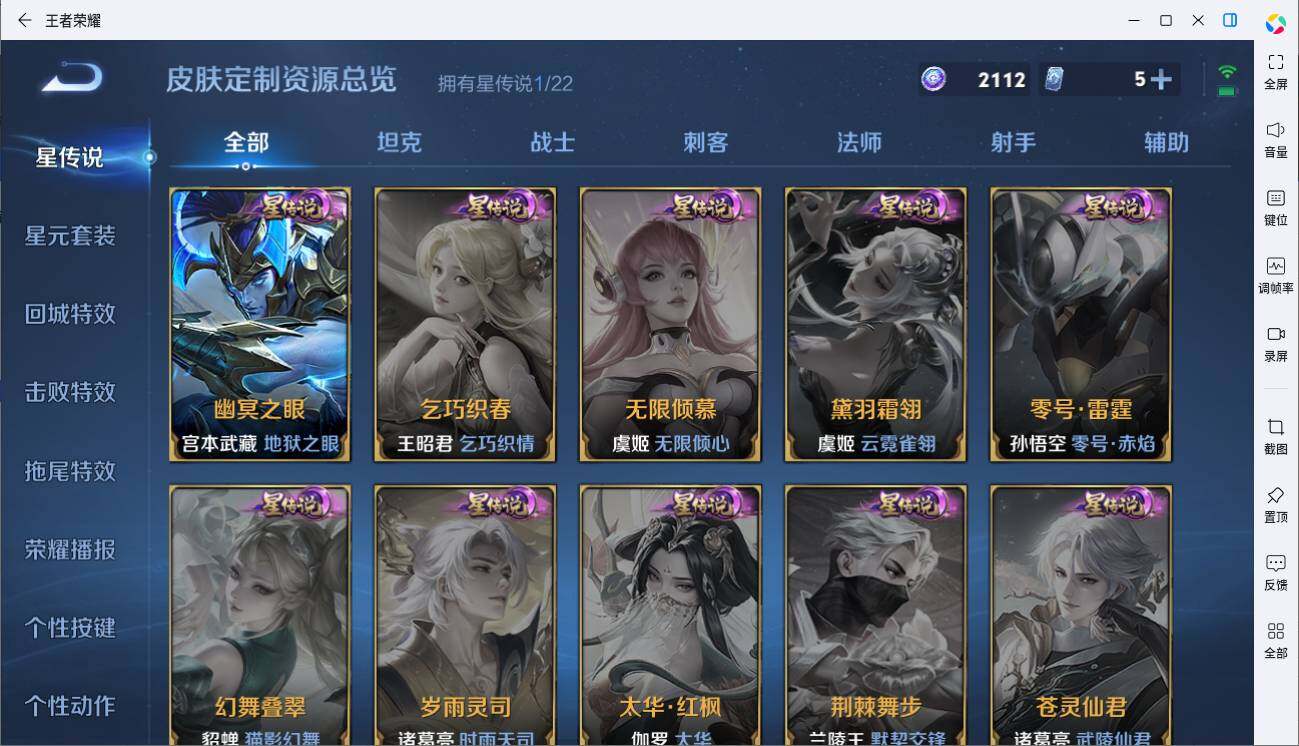 虞姬凯尔特女王,白起狰,太乙真人饕餮,曹操烛龙,芈月重明,典韦穷奇,狂铁御狮,米莱狄御霄,牛魔御旌,盾山御銮,夏侯惇朔风刀,明世隐疑决卦,老夫子醍醐杖,鬼谷子原初探秘者,狄仁杰万华元夜,程咬金演武夺筹,钟馗驱傩正仪,苏烈千军破阵,弈星混沌棋,达摩沙漠行僧,兰陵王金庭之子,沈梦溪大漠名商,李元芳云中旅人,桑启海盐诗旅,裴擒虎擒涛扼浪,鲁班大师探海日志,张良古海寻踪