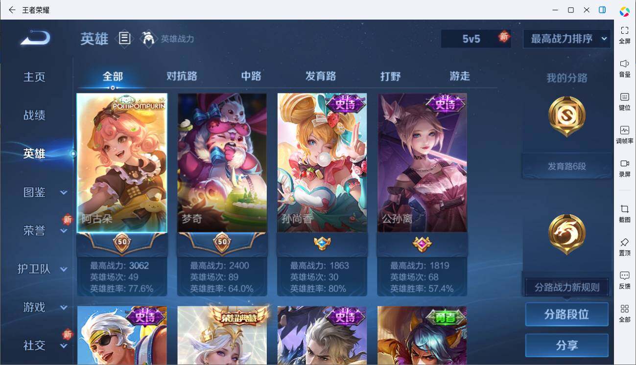 [14098360]可二次【店主推荐捡漏号!可直接换绑】安卓Q-V6-尊贵铂金III段位-123英雄-135皮肤-1典藏-2传说-39史诗