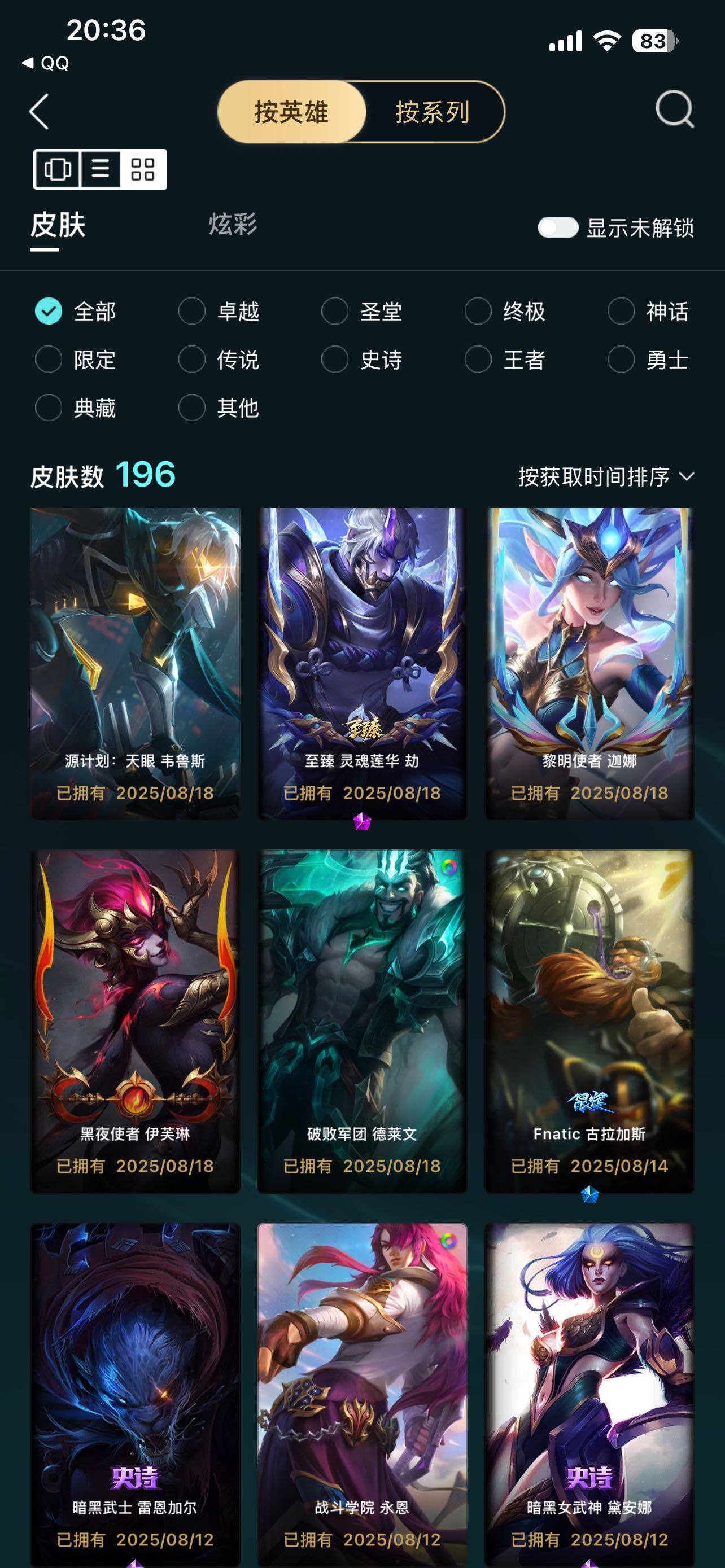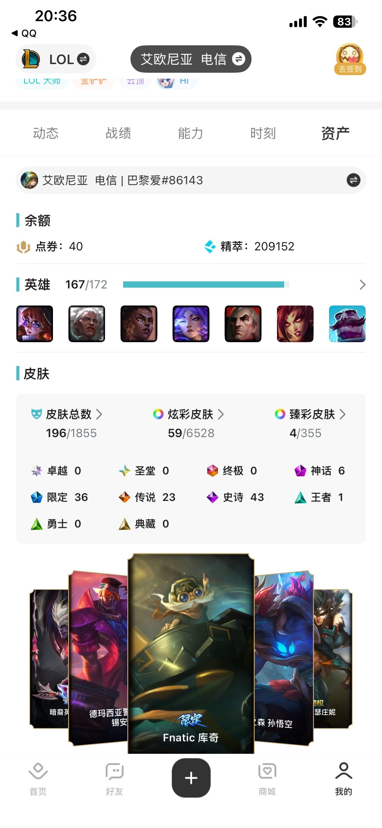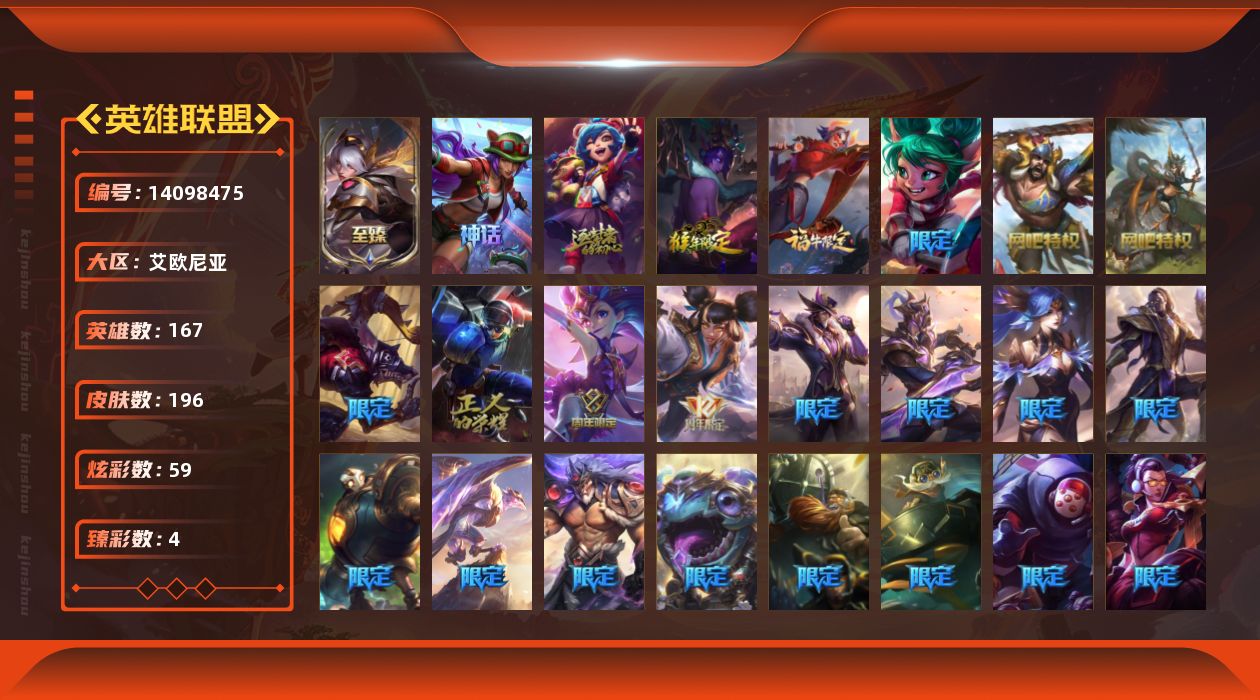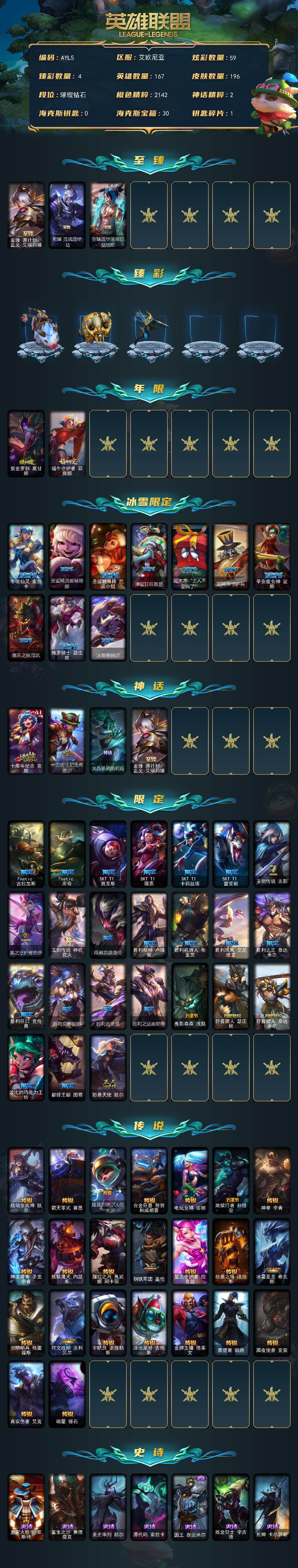 [14098475]可二次【店主推荐捡漏号!可直接换绑】钻石段位-167英雄-196皮肤-59炫-6神话-36限定-23传说-43史诗