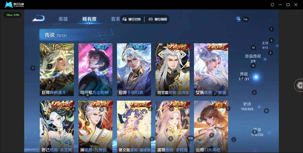 - [12287220]V10 2典藏 1珍品无双 2无双 1珍品传说 37传说 125英雄 398皮肤 可修改实名 优质装备:馥梦繁花,鸣剑·曳影,全息碎影(猴子典藏),韩信群星魔术团(韩信无双),天机白泽,朽木白哉,黄金狮子座,黄金射手座,冠军飞将,云鹰飞将(小将军),黄金白羊座,猫影幻舞,久胜战神,炽阳神光,一念神魔,云霓雀翎,末日机甲-孙尚香(绿蚂蚱),仲夏夜之梦(大飞蛾),地狱之眼,胖达荣荣,时之恋人-刘备(电焊工),游龙清影(小青龙),淬星耀世,超时空战士-狄仁杰,花朝如约(花篮子),无双飞将,浮生妄,霜月吟,澜逐花归海,艾琳觅芳踪,千山共赴,涂山容容 传说皮:落雪白狼,九山相柳 珍宝阁皮:蔷薇恋人,女武神 限定皮:白虎志(电光耗子),凤求凰(白切鸡),异界灵契(白毛香),傲雪梅枪,寅虎·展翼(孙膑年限),绯月行,时之彼端,白鹤梁神女,时雨天司(水龙头),神威(电光马子),飞衡(韩信年限),遇见飞天,高山流水,怒海麟威,五谷丰年,冰锋战神,游园惊梦,梁祝,御风骁将(吕布年限),天狼狩猎者,逐梦之星,逐梦之音,天狼征服者,奔雷神使(牛魔年限),祈雪灵祝(雪兔子),李小龙,逐梦之影,玄武志(苏烈年限),朱雀志(守约年限),猪悟能,引擎之心,青春决赛季,冰霜恋舞曲,神奇女侠,美猴王,寅虎·赤拳(老虎年限),百木心枪,枫霜尽 史诗皮:赞萌露比,灵蛊蚀心,鸭鸭历险记-刘禅,龙之律动,小牛鸭,石田雨龙,百相守梦-周瑜,幻珠鲛人,守夜人,百相守梦-黄忠,织梦人,紫霞仙子,苍穹之光,电玩小子(小书包),黄金分割率,特工魅影,千年之狐,江河有灵,蒙恬荣光圣徽,晚萤,魅语,无限星赏官,冰冠公主,偶像歌手,电玩·爆裂旋风,银翎春语,末日机甲-吕布,猫狗日记-孙策,猫狗日记-大乔,时之恋人-孙尚香,乱世虎臣,节奏热浪,修罗,女仆咖啡,摇滚巨星,水果甜心,绅士熊喵,天才门将,星夜王子,心灵骇客,时之奇旅-安琪拉,功夫厨神,德古拉伯爵,暗隐猎兽者,幽灵船长,鬼剑武藏,心灵战警,乐园奇幻夜,舞动绿茵,地狱岩魂,纤云弄巧,繁星吟游(呼啦呼啦),拒霜思,缤纷独角兽,乘风破浪,逐浪之夏,水晶猎龙者,曙光守护者,热力回旋,箭羽风息,金属风暴,原初追逐者,圣诞狂欢,圣诞恋歌,鹰眼统帅,暗夜贵公子,魅力维加斯,黎明之约,赏金猎手,无心,未来纪元-赵云