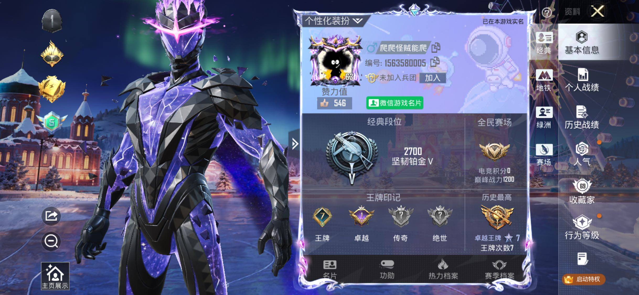 - [9890871]实名: 可修改 时装数: 941 载具数: 3 枪械数: 315 战备数: 238 热门装扮: 奇异狩猎者,梦幻火箭(新101),极限特训,幻影战神,甜心巧克力,未来战士,呆萌铁蟹,怪诞乔克,宝贝奶油派,浪漫波比,天使彩虹糖,梦魇先生,放客神游,迅捷狂鲨,鹰眼刺客,萌熊伴侣,好奇恐龙,都市猎人,彗云及圣,绚金战神,花间之火,新星烈龙,星之彼岸,2号机款机体服,灵感创作师,女娲后裔-赵灵儿,激萌罗小黑,兔兔白日梦,星兔领航员,赤蝎幽灵,派对舞王,飒粉甜心,小可学妹,水仙星,宙之时溯,小蓝,光极星,守护天翼,千金淑猫 载具: 玛莎拉蒂Ghibli(蓝),合金龙骨(蓝),玛莎拉蒂MC20(星石白) 稀有枪皮: UMP45雪国精灵,M762甜蜜誓约,M416五爪金龙,SCAR-L梦幻火箭,AKM甜心宝贝,AWM花间之火,AKM梦之光华,M416风花雪月,GROZA焦糖拿铁,SCAR-L青春物语,M416暖熊萌萌,M16A4垂柳戏鸭,AUG超新星,P90沙丘之主,PKM江南烟雨,M416电玩时刻,破片手榴弹粉粉猫爪,烟雾弹猫咪绅士,AKM-幽焰骑士,AUG-许七安,Kar98K-巳巳如意