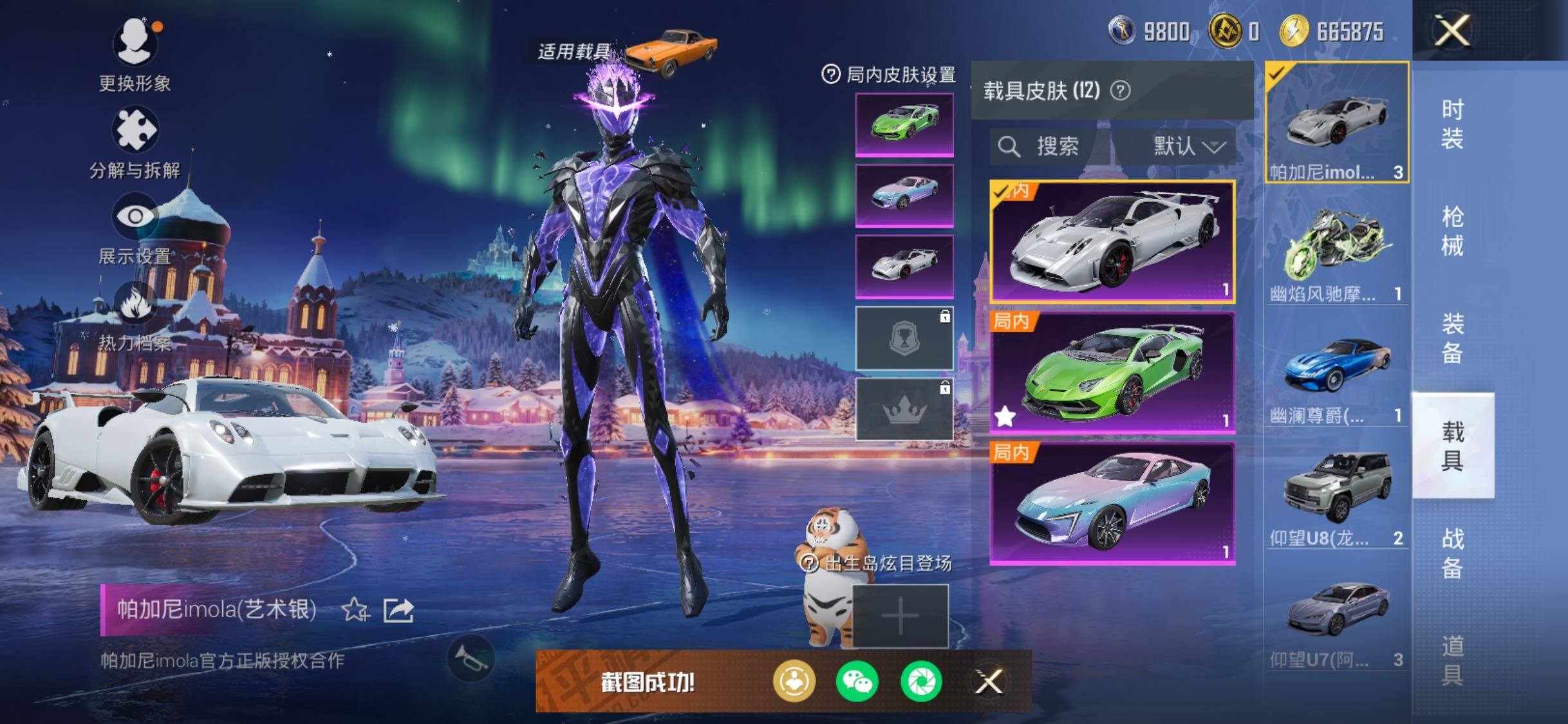 【粉色载具】:兰博基尼Aventador SVJ(翡翠绿),兰博基尼Estoque(银翼灰),兰博基尼URUS(明艳黄),阿斯顿马丁DBS(绿),仰望U7(阿盖尔紫),仰望U8(龙石绿),帕加尼imola(艺术银),灵翼风驰(幻彩蓝),幽澜尊爵(静谧蓝),合金龙骨(绿),糖心拉力赛车(波动紫),幽焰风驰摩托车,僚机-萌兔起飞