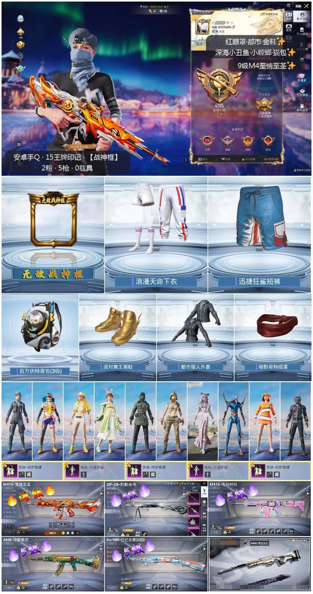 [14099265]可二次【店主推荐捡漏号!可直接换绑】/素材身法号/无敌战神框2/绝世印记1/地铁满天赋/M416-至情至圣(九级) 安卓 手Q-无敌战神框-2粉装-5特效枪-3粉色飞行器-6w热力值-15王牌印记-145套装-210枪皮【热门品类】:套装-浪漫天命,套装-都市猎人,套装-派对舞王,套装-深海小丑鱼,套装-小丑鱼,套装-忍者信条,套装-龟仙人,套装-暗影哥特,角色-Mark.06【粉色套装】:粉装-闲梦青缨,角色-冷漠罗丽【粉色枪皮等级】:AKM-绿萝繁花(五级),M416-至情至圣(九级),M416-电玩时刻(五级),Kar98K-巳巳如意(五级),DP-28-豹影疾电(五级)【粉色飞行器】:月下星之子飞行器