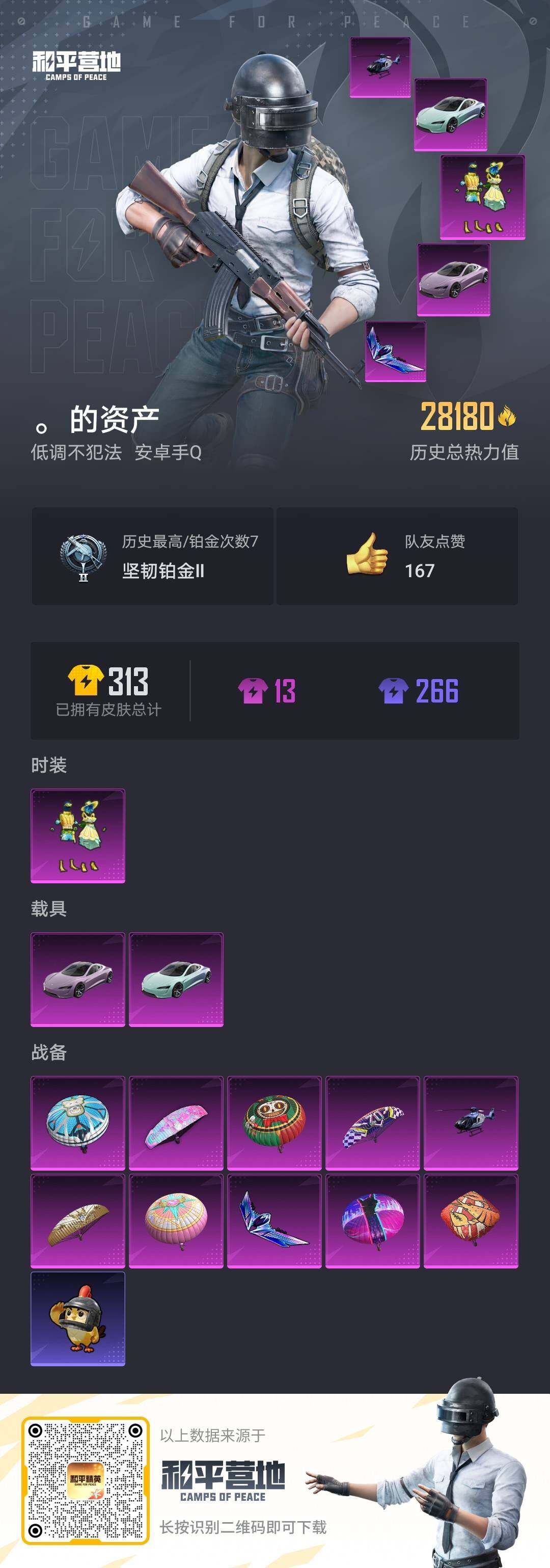 - PX_2059325- 安卓手Q-7王牌印记-有战神框-7粉装-10特效枪-2载具-58838热力值-114套装-171枪皮-3卓越印记-1传奇印记 【7粉装】,零号机款机体服,宝贝奶油派,星穹咏叹调,花间之火,碧穹智者,香水柠檬,星之彼岸 【10特效枪】AKM-星际浪客-4级 SCAR-L-梦幻火箭-4级 M416-五爪金龙-5级 GROZA-香水柠檬-5级 AUG-圣斗士星矢-5级 AUG-暖