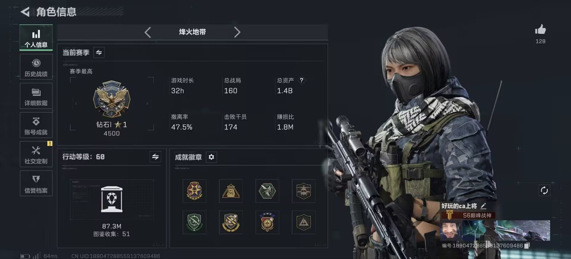 [14103742]总资产1.4b 可二次【店主推荐捡漏号!可直接换绑】1035327k哈伏币-1326m流动资产-60烽火等级-钻石-1战场等级-无军衔