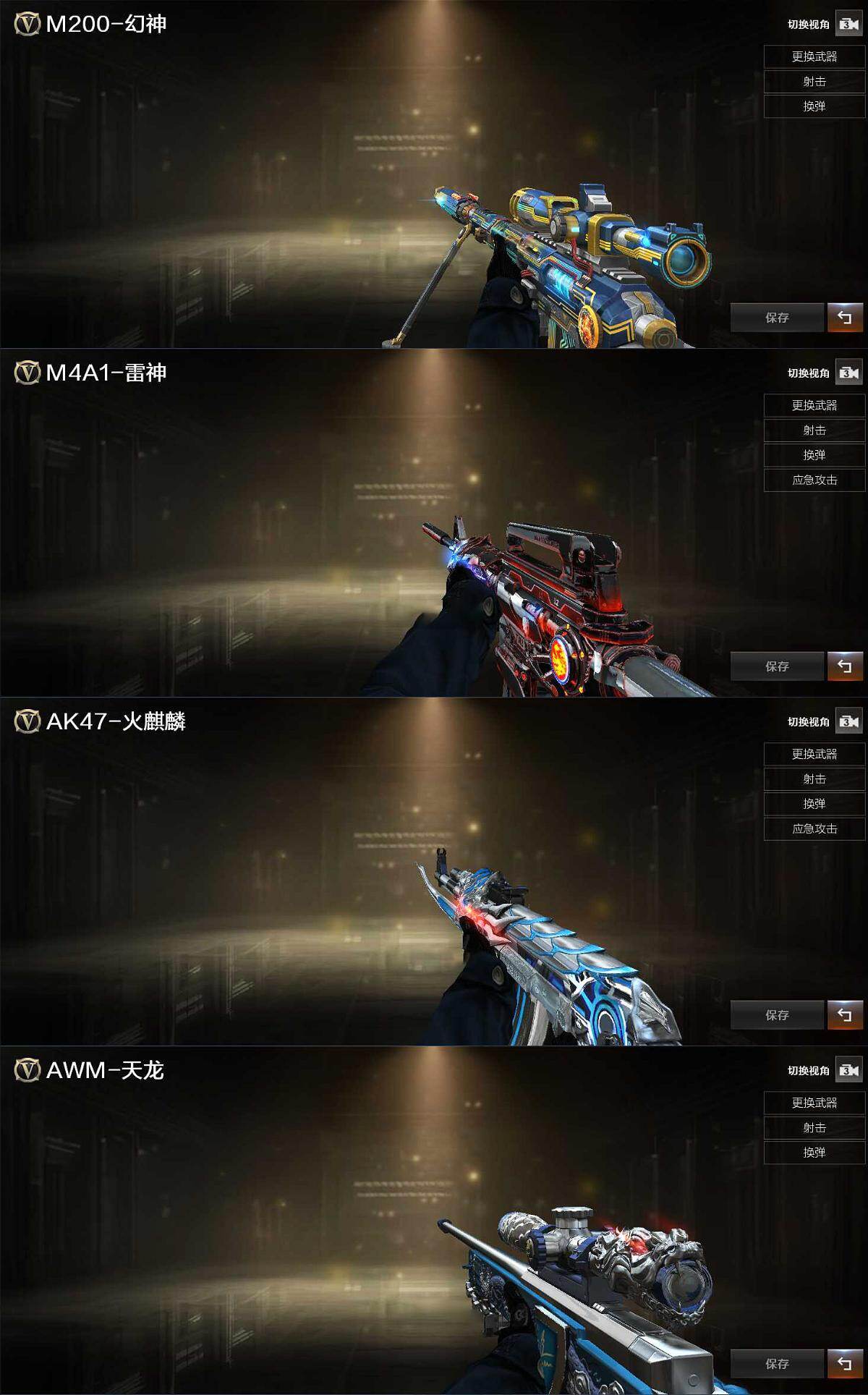 【英雄级武器】:AK47-火麒麟,M4A1-雷神,无影-神兵利器,黑武士-锦绣游龙,Barrett-极光,AWM-裁决*2,M200-幻神,王者风神-觉醒版,修罗-古蛇迷踪,高爆手雷-竞技荣光,手雷-热带奇洋,高爆手雷-古蛇迷踪,闪光弹-竞技荣光,烟雾弹-竞技荣光,烟雾弹-古蛇迷踪