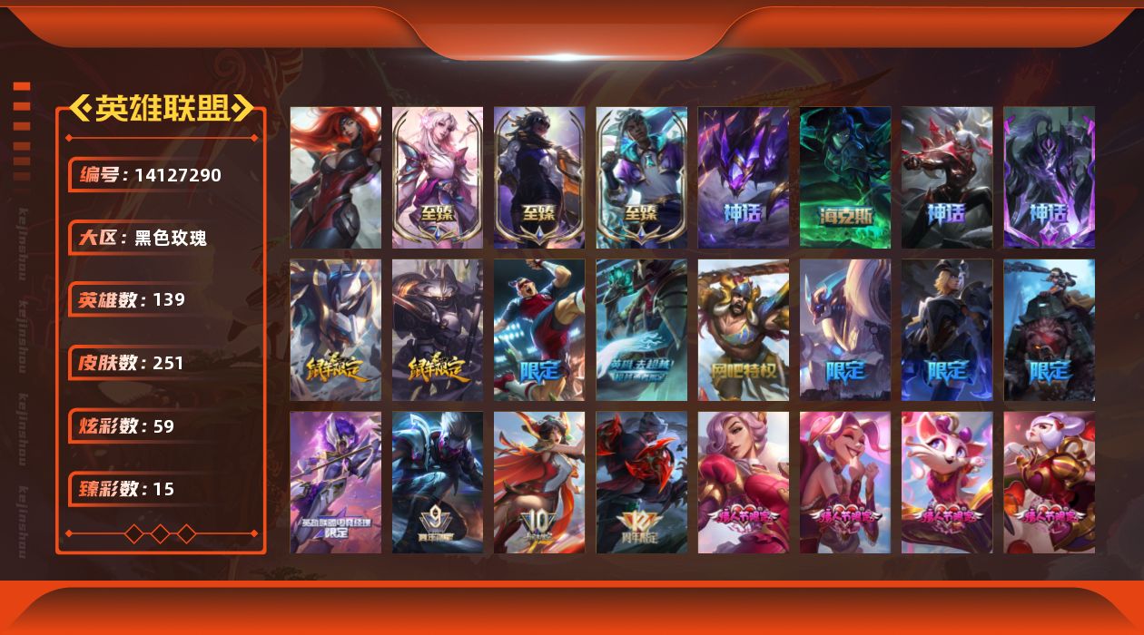 [14127290]可二次【店主推荐捡漏号!可直接换绑】铂金段位-139英雄-251皮肤-59炫彩-1终极-9神话-65限定-30传说-20史诗