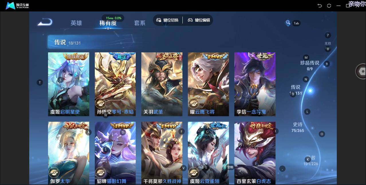 - [11528568]V7 1珍品传说 8传说 114英雄 94皮肤 可修改实名 优质装备:器灵·落星盏,云鹰飞将(小将军),炽阳神光,一念神魔,澜逐花归海 限定皮:愿照·岁时盈(虞姬年限),愿照·山河定(司空震年限),愿照·千秋盛(女娲年限),鸣野蒿 史诗皮:化蝶舞,茶境仙,紫霞仙子,魅语,无限星赏官,电玩·爆裂旋风,节奏热浪,女仆咖啡,水果甜心,心灵骇客,德古拉伯爵,暗隐猎兽者,鬼剑武藏,舞动绿茵,水晶猎龙者,曙光守护者,箭羽风息,圣诞狂欢,圣诞恋歌,鹰眼统帅,魅力维加斯,未来纪元-赵云