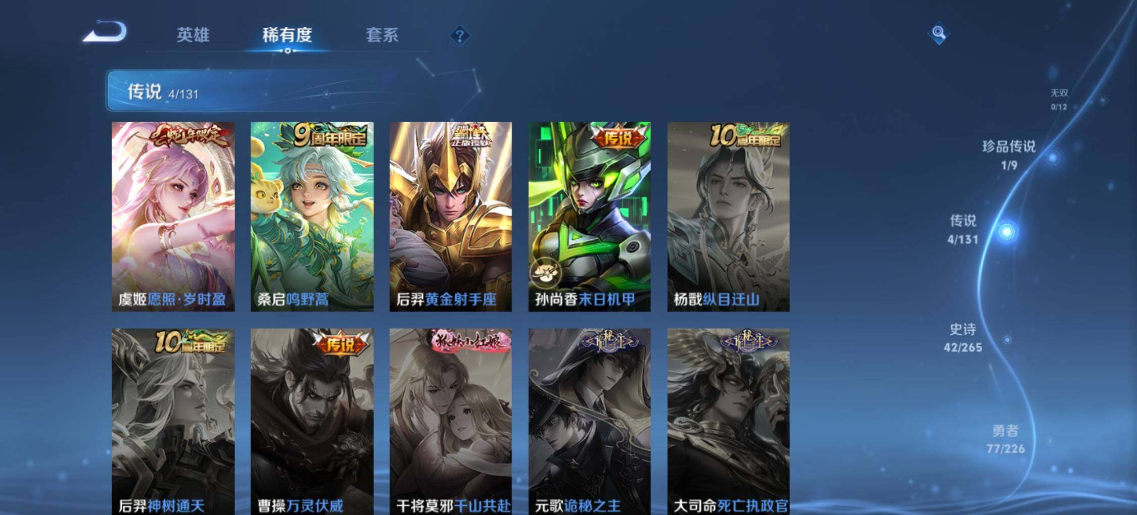 【传说皮肤】:虞姬愿照岁时盈,桑启鸣野蒿,后羿黄金射手座,孙尚香末日机甲