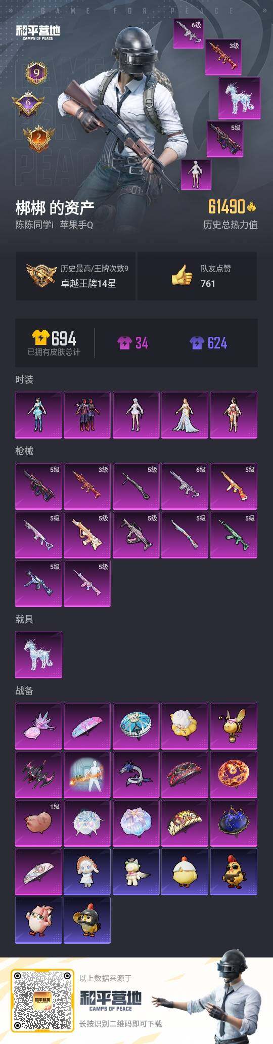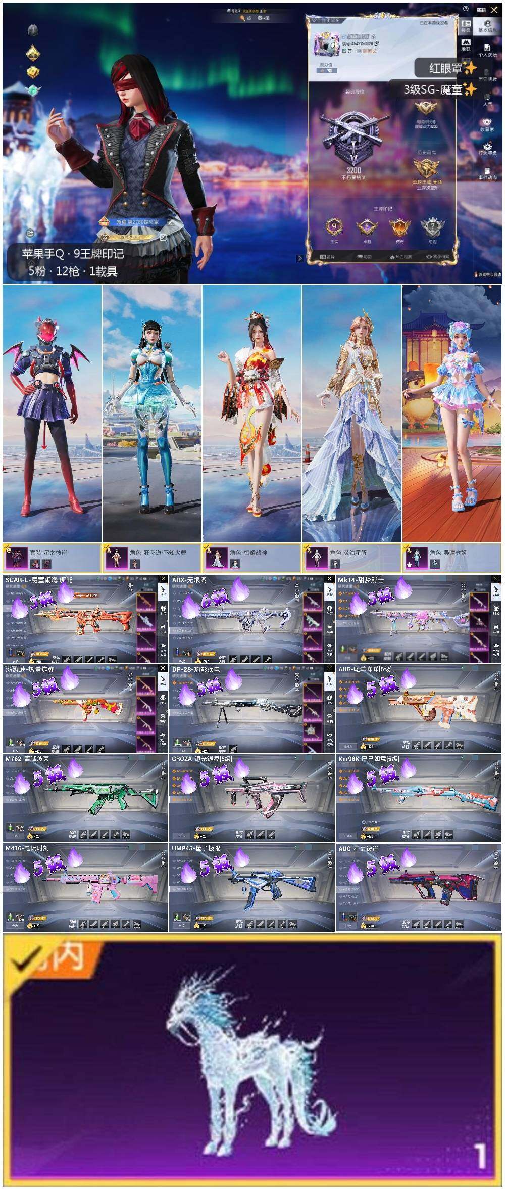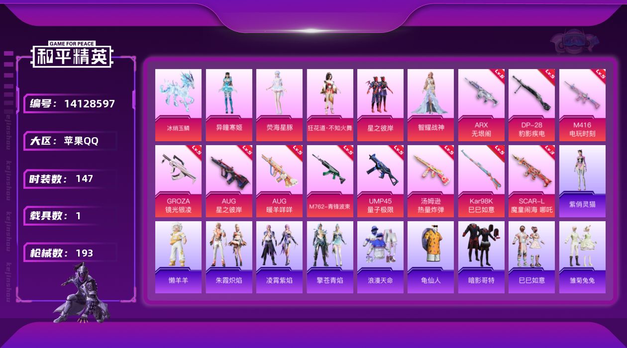 [14128597]【店主推荐捡漏号!可直接换绑】/素材身法号/地铁满天赋 苹果 手Q-5粉装-12特效枪-1载具-5粉色飞行器-6.1w热力值-9王牌印记-147套装-193枪皮【热门品类】:套装-浪漫天命,套装-龟仙人,套装-暗影哥特【粉色载具】:冰绡玉鳞【粉色套装】:粉装-星之彼岸,角色-狂花道·不知火舞,角色-智耀战神,角色-荧海星豚,角色-异瞳寒【粉色枪皮等级】:SCAR-L-魔童闹海 哪吒(三级),M416-电玩时刻(五级),GROZA-镜光银凌(五级),AUG-星之彼岸(五级),AUG-暖羊咩咩(五级),M762-青锋波束(五级),ARX-无垠阁(六级),UMP45-量子极限(五级),汤姆逊-热量炸弹(五级),Kar98K-巳巳如意(五级),Mk14-甜梦熊击(五级),DP-28-豹影疾电(五级)【粉色飞行器】:星之彼岸飞行器,飞天猪飞行器,灵珠游龙飞行器