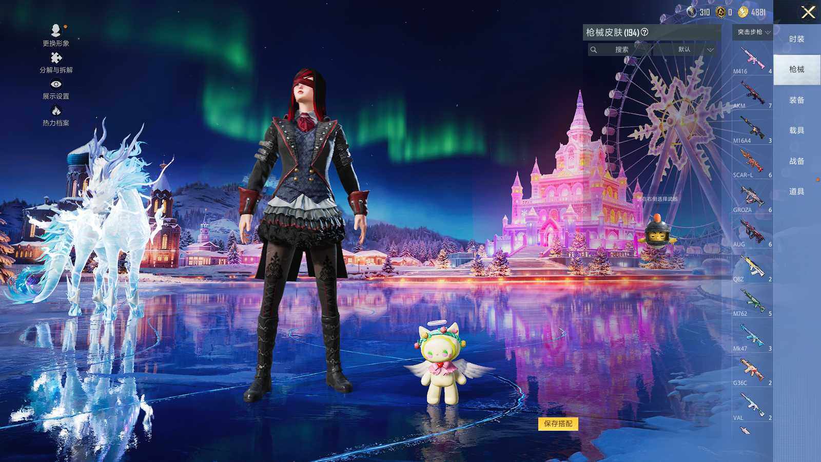 M416-电玩时刻,GROZA-镜光银凌,AUG-星之彼岸,AUG-暖羊咩咩,M762-青锋波束,UMP45-量子极限,Kar98K-巳巳如意