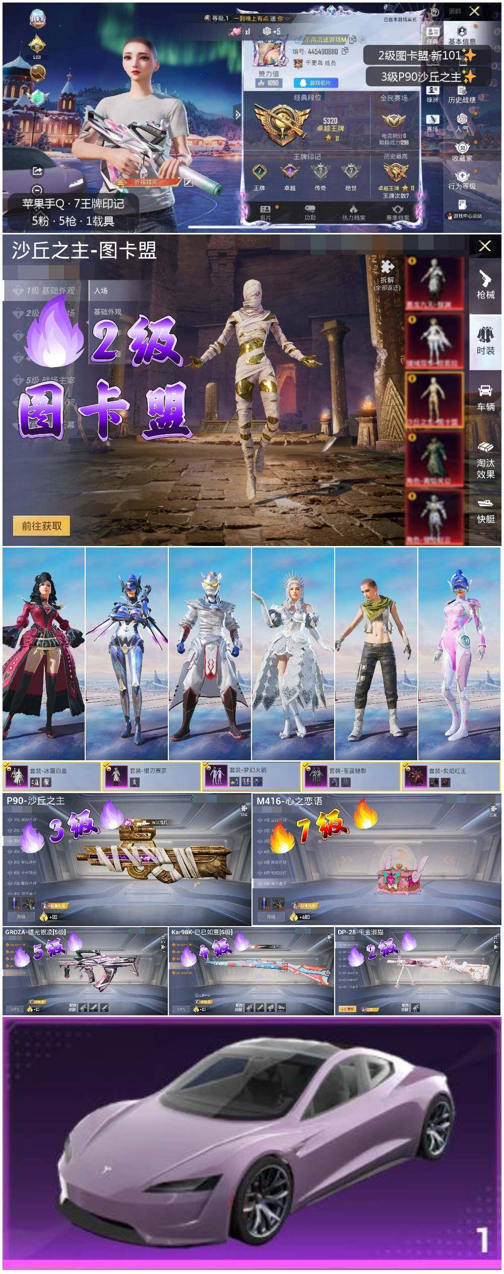 - [12954427]素材身法号/地铁满天赋【特价急出/详情看图】:苹果 手Q-5粉装-10特效枪-1载具-2粉色飞行器-7.5w热力值-11王牌印记-156套装-230枪皮【热门品类】:套装-浪漫波比,套装-粉红小猪【粉色载具】:宝马M4(圣保罗黄)【粉色套装】:粉装-粉色回忆,粉装-金属狂野,粉装-幻彩马卡龙,角色-光极星,角色-月影灵韵【粉色枪皮等级】:AKM-梦之光华(五级),M416-五爪金龙(五级),M416-心之恋语(七级),GROZA-镜光银凌(五级),AUG-暖羊咩咩(五级),UMP45-相思残雪(六级),Kar98K-伏魔团(五级),Kar98K-巳巳如意(五级),Mk14-甜梦熊击(五级),DP-28-豹影疾电(五级)【粉色飞行器】:古堡领主飞行器,深渊漩涡飞行器