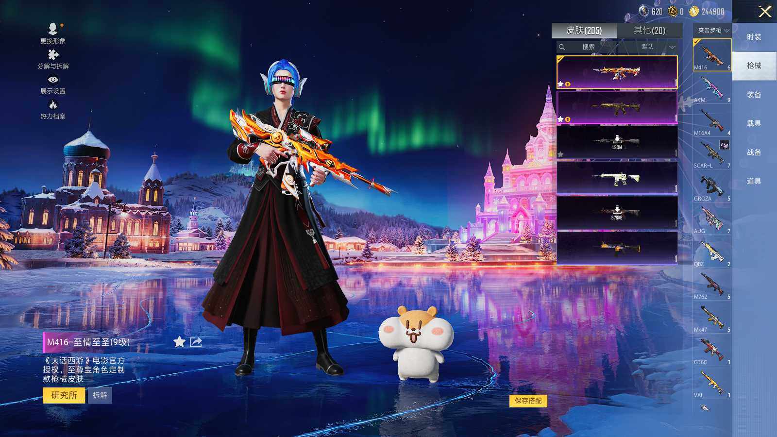 AKM-梦之光华,M416-五爪金龙,M416-至情至圣,AUG-超新星,Kar98K-巳巳如意