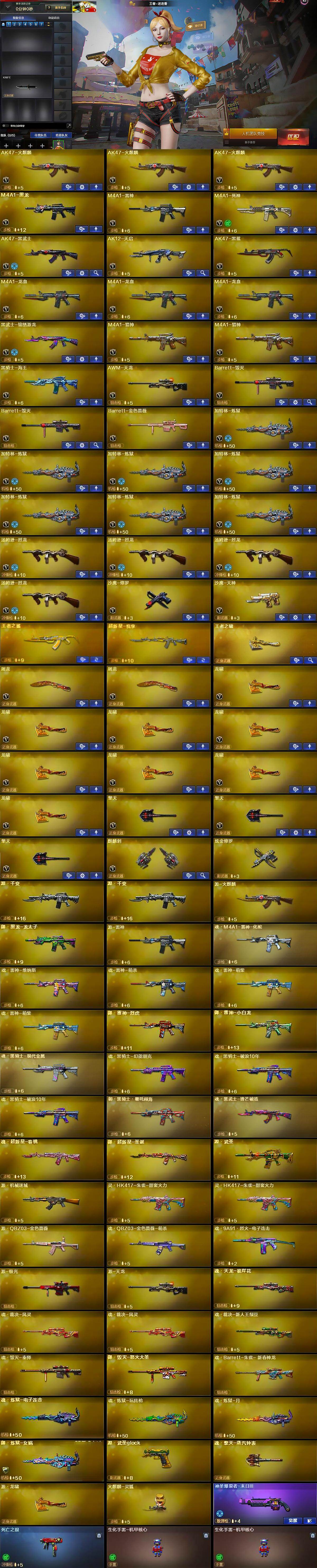 【英雄级武器】:AK47-火麒麟*3,M4A1-黑龙,M4A1-雷神,M4A1-死神,AK47-黑武士,AK12-天启,AK47-黑鲨,M4A1-龙血*3,黑武士-锦绣游龙,M4A1-猎神*2,黑骑士-海王,AWM-天龙,Barrett-毁灭*2,Barrett-金色蔷薇,加特林-炼狱*7,汤姆逊-烈龙*4,沙鹰-修罗,沙鹰-天神,屠龙*2,龙啸*8,擎天*3,麒麟刺
