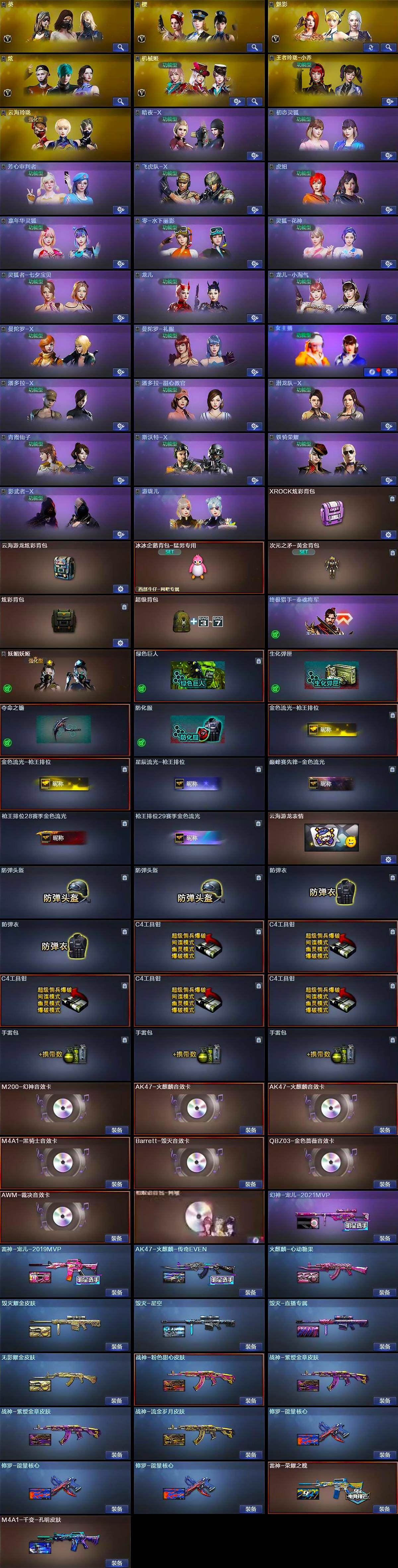 【皮肤】:幻神-宠儿-2021MVP,雷神-荣耀之魄,雷神-宠儿-2019MVP,AK47-火麒麟-传奇EVEN,火麒麟-心动糖果,毁灭耀金皮肤,毁灭-星空,M4A1-千变-孔明皮肤,无影耀金皮肤,战神-粉色甜心皮肤,战神-紫绶金章皮肤*2,战神-流金岁月皮肤,AK47-B-常胜将军-曹操,AK47-B-常胜将军-刘备*2,AK47-B-常胜将军-孙权,修罗-能量核心*3