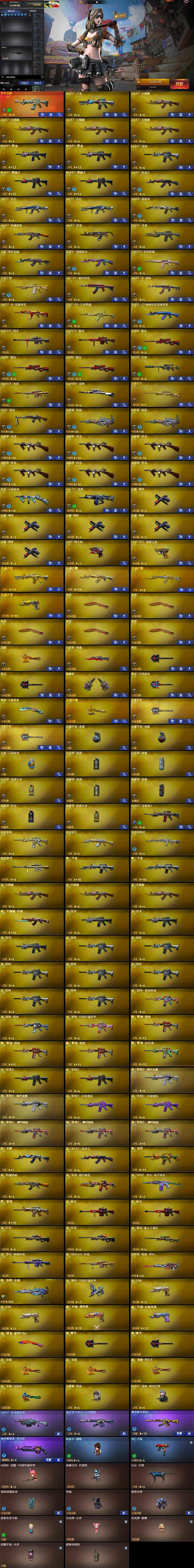 【英雄级武器】:M4A1-千变,AK47-火麒麟*4,M4A1-黑龙*2,M4A1-雷神,M4A1-黑骑士*2,AK47-黑武士,AK12-天启*2,AN94-超新星,AK47-机械迷城,AK47-黑鲨,M4A1-龙血,无影-神兵利器,黑武士-锦绣游龙,QBZ03-金色蔷薇,王者之势-觉醒版,AK-47-猩红传说,AK47-B-战神,A