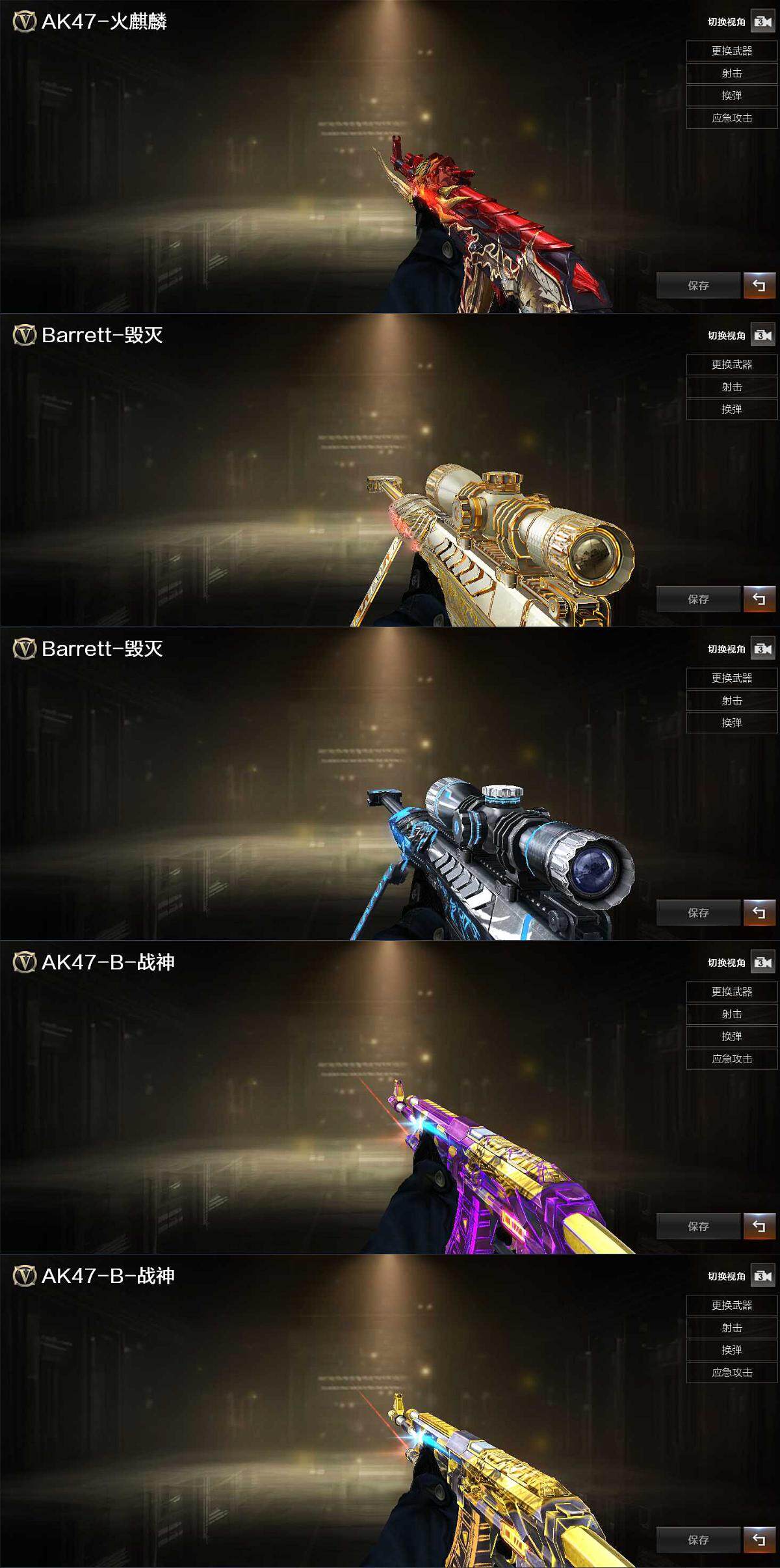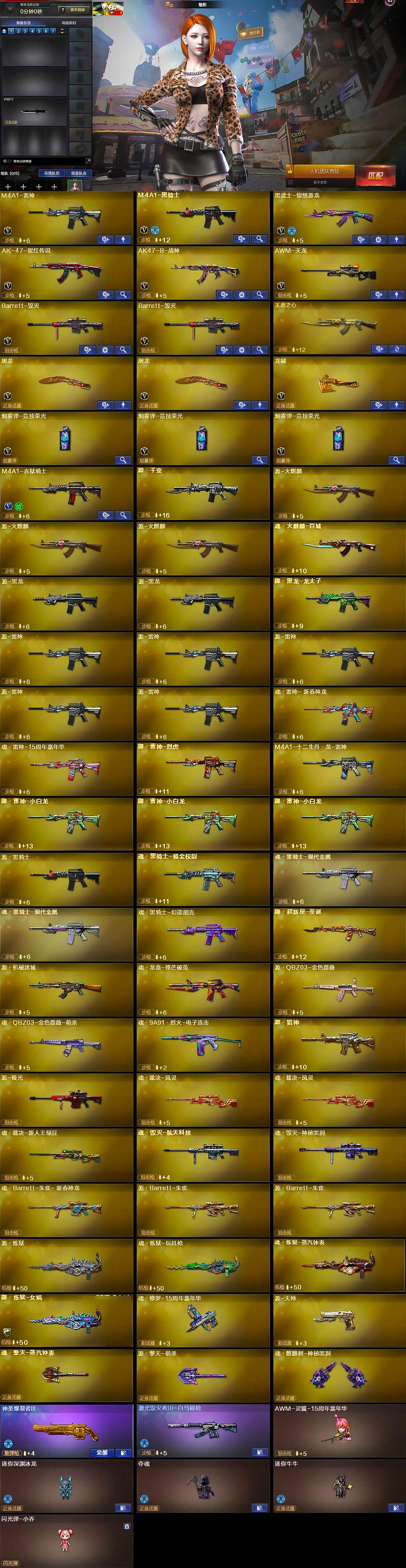 【英雄级武器】:M4A1-雷神,M4A1-黑骑士,黑武士-锦绣游龙,AK-47-猩红传说,AK47-B-战神,AWM-天龙,Barrett-毁灭*2,屠龙*2,龙啸,烟雾弹-竞技荣光*3,M4A1-赤狱骑士