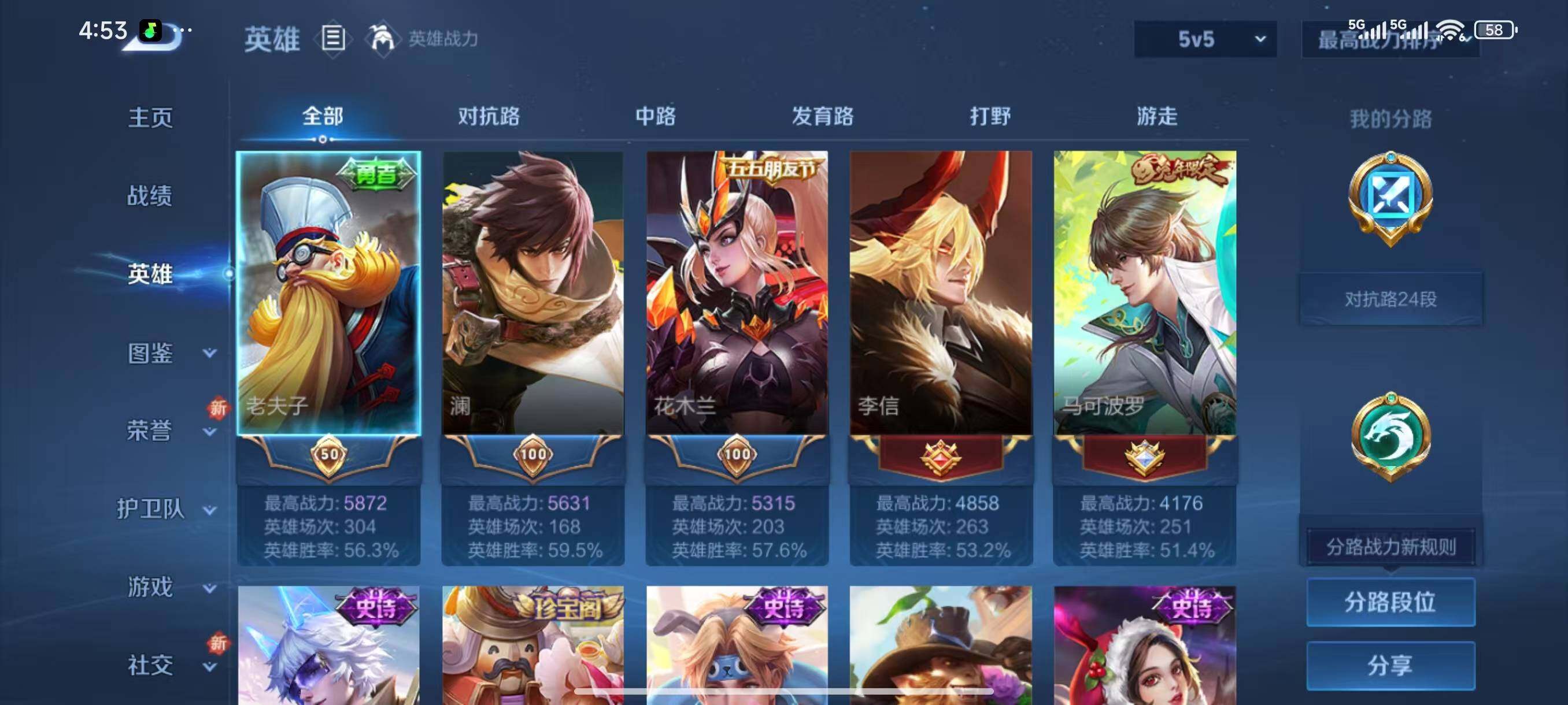 - [11823244]-可二次-V7-124英雄-138皮肤-1星传说-8传说-43史诗 山海·苍雷引-曜 山海·炽霜斩-李信 山海·玄木吟-马可波罗 烈魂-黄忠 岱宗-典韦 街头霸王-韩信