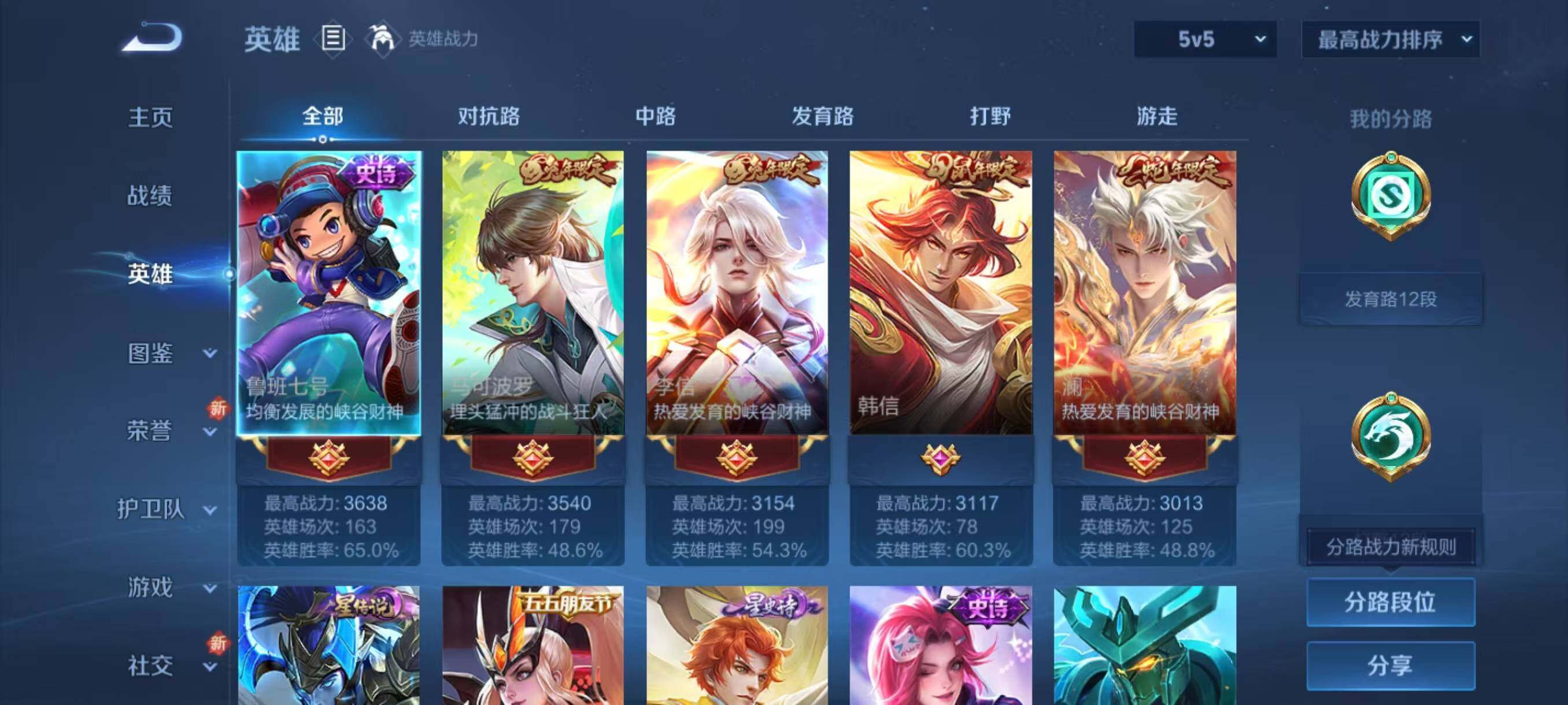 - [11527773]V2 3传说 123英雄 106皮肤 可修改实名 优质装备:久胜战神 传说皮:幻光神枪 珍宝阁皮:玩趣恶龙 限定皮:鸣野蒿,五谷丰年,李小龙 史诗皮:灵蛊蚀心,百相守梦-黄忠,特工魅影,江河有灵,偶像歌手,乱世虎臣,女仆咖啡,摇滚巨星,水果甜心,绅士熊喵,暗隐猎兽者,幽灵船长,鬼剑武藏,心灵战警,地狱岩魂,缤纷独角兽,乘风破浪,金属风暴,鹰眼统帅,魅力维加斯