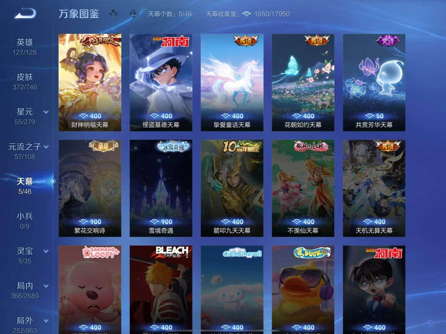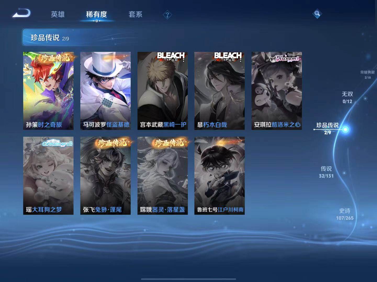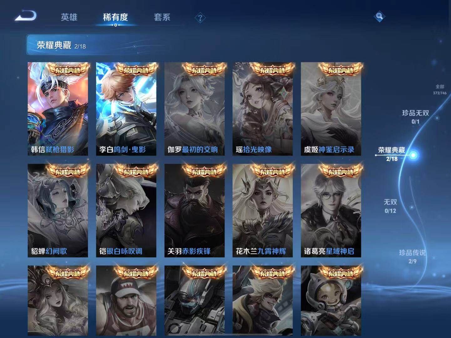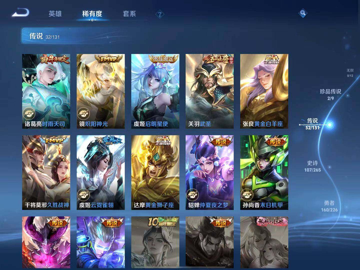 - [11658700]V7 2典藏 1传说 125英雄 141皮肤 典藏英雄武则天 可修改实名 荣耀水晶:全息碎影(猴子典藏),星空梦想(太空人) 传说皮:海洋之心 珍宝阁皮:万物之道 限定皮:大圣娶亲 史诗皮:龙之律动,幻珠鲛人,苍穹之光,白龙吟,千年之狐,冰冠公主,偶像歌手,魅语,末日机甲-吕布,女仆咖啡,水果甜心,天才门将,星夜王子,心灵骇客,功夫厨神,德古拉伯爵,暗隐猎兽者,幽灵船长,纤云弄巧,圣诞恋歌,鹰眼统帅,魅力维加斯