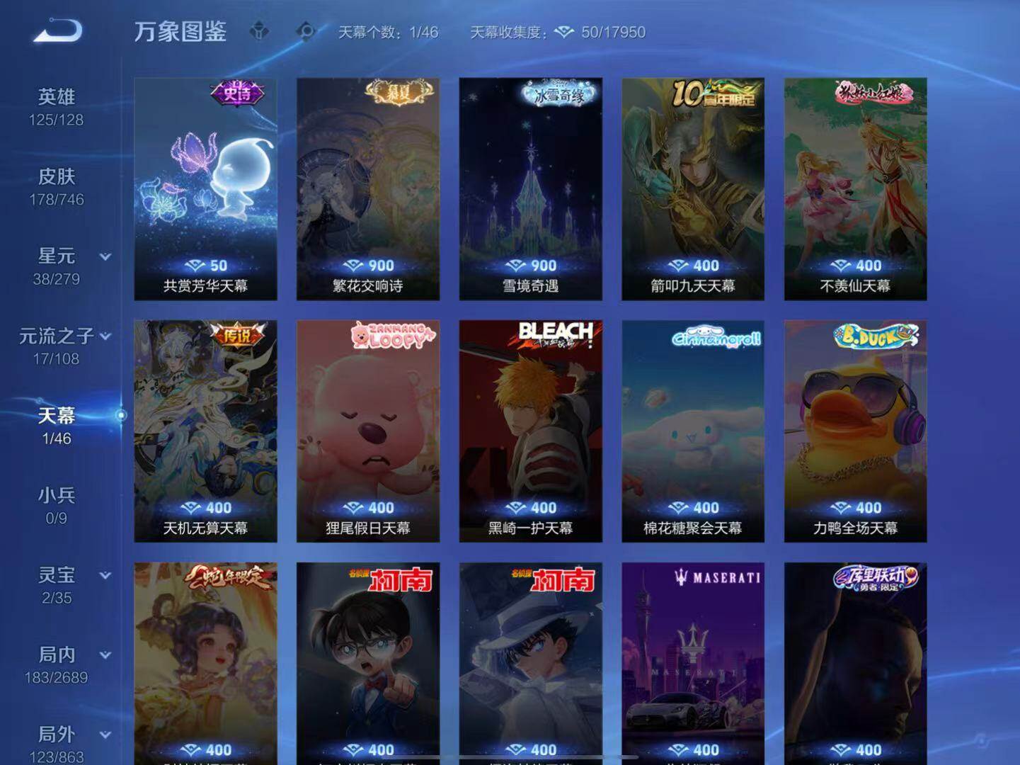 - PX_2101672-/皮肤450/典藏3/传说37/史诗144/英雄125/无限飓风号/星空梦想/鸣剑曳影/时之思念/未来机甲/金色仲夏夜/幽冥火/蔷薇恋人/优雅恋人/女武神/特工战影/胡桃夹子/共赏芳华天幕/超时空战士男/天魔缭乱/地狱火/末日机甲女/仲夏夜之梦/永曜之星/黄金射手座/胖达荣荣/白虎志/时之恋人男/一念神魔/云鹰飞将/武圣/零号赤焰/启明星使/飞鸢探春/游龙清影/淬星耀世/末日