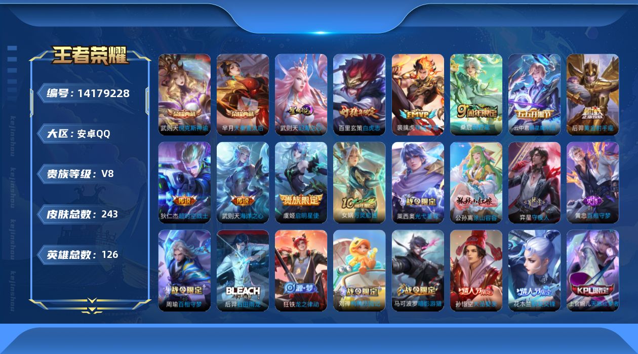 [14179228]金标武则天安卓Q-243皮肤-2典藏皮肤-1典藏英雄-9传说-68史诗