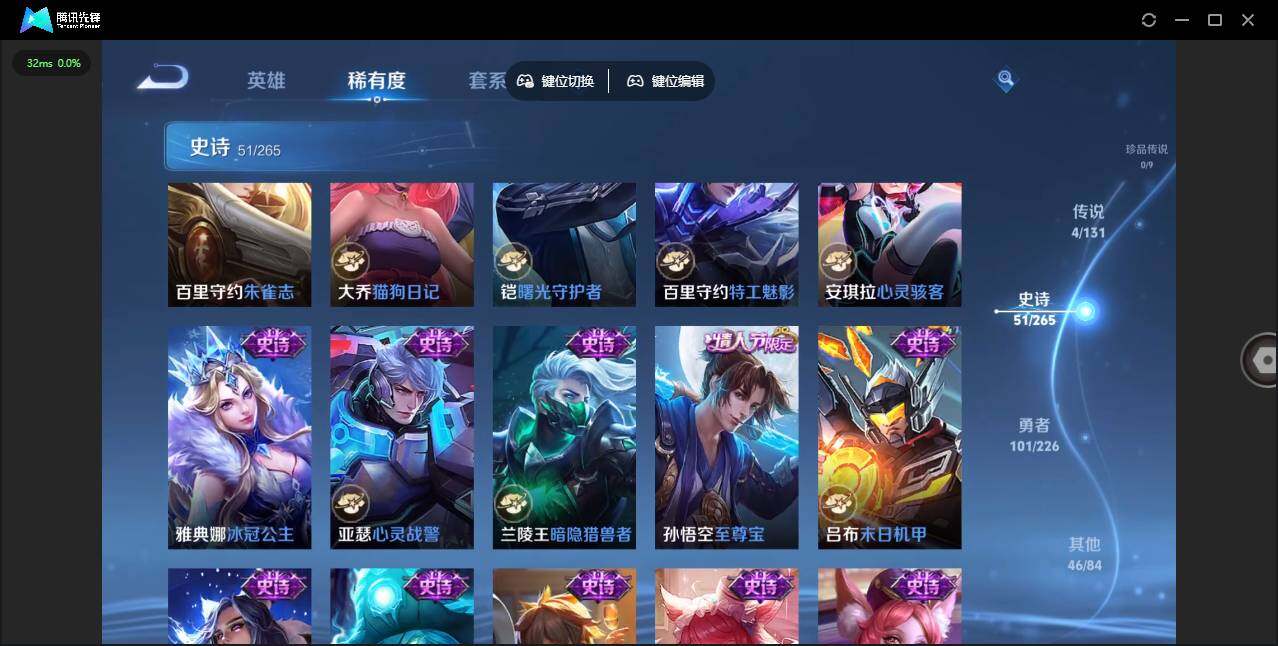 - PX_2077319-75 安卓QQ/永恒钻石/276皮肤/123英雄/2典藏/0珍品无双/0无双/0珍品传说/24传说/97史诗/8稀有英雄 【2 典藏皮肤】鸣剑·曳影 李白,银白咏叹调 铠, 【24 传说皮肤】启明星使 虞姬,电玩·雷克斯 澜,无双飞将 马超,白虎志 百里玄策,李逍遥 曜,零号·赤焰 孙悟空,云鹰飞将 曜,神器·狴犴令 狄仁杰,深海之息 马可波罗,游龙清影 西施,凤求凰 李白
